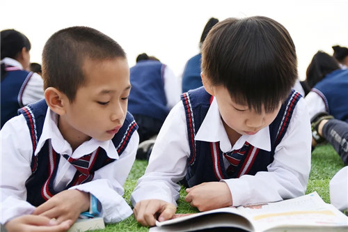 为此,学校特意编辑诵读课本《文笔晨风》,这个暑假《文笔晨风 经典诵读》又将出版,学校希望孩子们在“与黎明共舞”中养成良好的习惯,在黎明时刻与经典相会,沉浸其中,玩味其间,感受阅读带来的快乐。 2、午读——与唯美相伴 瞧!此刻孩子们的心中、眼中只有书,他们与书为友,与书为伴,在书的海洋中尽情遨游。而老师要做的,就是捧起一本书,与孩子们一起静享这美好的午读时光。 3、诵读——与课程同步 文笔小学每周都安排一节的诵读课,课程的内容可以是心爱作品朗读课:课上每个人都读他最喜欢、最使他动情的作品,或是诗歌,或是中、短篇作品片段,老师也读自己喜欢的作品。 也可以是新书介绍课:请几个学生为全班同学介绍一本书。程序是:首先介绍书名、作者,然后简单介绍一下书的内容,最后为全班同学朗读书中他最喜爱的一个部分。当然形式可以多样化,只要可以让学生从中感受到阅读的快乐,便是最好的。 给阅读一个舞台 教育家李苦禅曾经说过:“鸟欲高飞先振翅,人求上进先读书。”为了营造书香校园气氛,学校组织开展读书节各种活动,在活动中让“书香校园”理念深入到每一个学生的心中。
