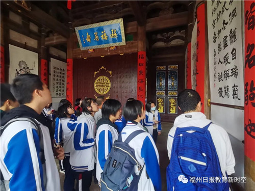 听着工作人员的介绍 同学们频频点头 从平日在书的海洋中遨游到走入社会、感受社会,是一种奇妙而幸福的体验。 高一(1)班的陈晓悟告诉时空君,自己平时就对历史特别感兴趣,没想到离学校不远的地方就有历史文化如此深厚的地方,考察活动结束后,会利用课余时间走进这里,通过实地调研和资料佐证的方式,深入了解闽都文化。