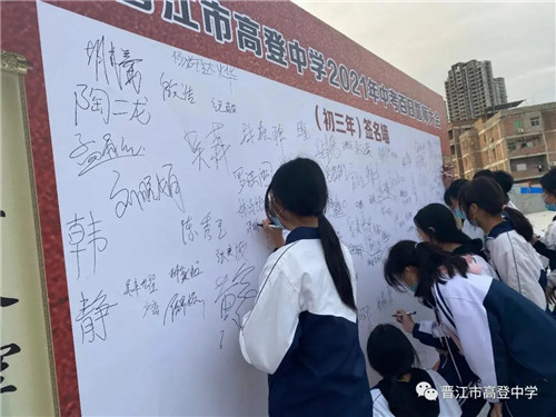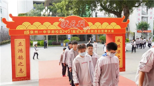 转眼,又是一年中考时, 近日,泉州不少学校举行了 中考百日冲刺誓师大会 活动现场热血沸腾! 快来看看吧! 泉州一中 青春纪念册——泉州一中2021届初三百日誓师中考加油视频 3月10日、12日,泉州第一中学学府校区及东海校区分别举行初中2021届百日誓师大会。 拜孔子像、迈状元门、戴“牛气冲天”手环,表决心签名墙留念,精彩纷呈的形式为学子们鼓劲。学生、家长和老师代表们为初三考生们送出了寄语。愿同学们在最后的百天珍惜光阴,潜心备考。学生们深受感发,精神振奋,欢声与感动盈满会场。 在老师和家长们的见证下,全体初三同学进行了集体宣誓,一腔热血,万丈豪情。誓要破釜沉舟,亮出理想,拼出实力,考入理想的高中,圆金色六月梦。 南安市实验中学 3月10日下午,南安市实验中学在田径场隆重举行2021届毕业班成人礼暨“超越自我·圆梦中考”中考百日冲刺誓师大会。 在成人礼感恩仪式上,学生们在家长们的注目下,稳步走过成人门,接过家长们递来的鲜花和礼物并互动。 晋江二中 3月8日,晋江二中举行2021届中考百日誓师大会。 各班轮流庄严宣誓,明确未来努力方向。同学们掷地有声的誓言震撼人心、催人奋进!这是同学们的青春誓言,这是同学们冲锋的号角!誓言已经发出,号角已经吹响!师生和家长在横幅上郑重签名,代表决心与担当! 会后,师生到陶园共同植树浇水,合影留念,种下一片希望,留下成长的印迹。 晋江市高登中学 3月10日下午,晋江市高登中学初三、初二年级全体师生在学校运动场主席台隆重举行“2021年中考百日誓师大会”。 初三年全体学生在吴萍同学的引领下共同宣誓,并与教师们一同在宣誓栏上进行签名,郑重地签下决心与信心。 南安市东溪中学 3月13日,南安市东溪中学王立新书记、九年级教师、学生及部分家长志愿者前往白云寺举行研学实践暨中考百日冲刺誓师活动。 本次活动以年段师生健康徒步的形式展开,队伍从白云寺山脚下步行至白云寺山顶。一路上,师生们精神饱满,士气昂扬,置身在山林绿树中,尽情饱览春天的色彩,让紧张的学习生活得到了一次放松;同时,近一个小时的健康徒步对同学们也是一次意志力的考验,使他们明白只有锲而不舍方能达到目标,坚定了他们圆满完成中考任务的信心。 “青春的口号,是我们诚挚的梦想;青春的呐喊,是我们坚定的诺言。今天,在此刻,让我们大声呼喊,说出我们的誓言。今天,在此刻,让我们勇敢表达,点燃青春的激情。”青山古寺下各班学生用整齐洪亮的声音呐喊出青春的宣言,铿锵有力的宣言响彻全场,汹涌澎湃。 春风得意马蹄疾 最是金榜题名时 一百天的汗水挥洒 将饱满六月收获的果实 一百天的拼搏苦战 将暸亮六月归航的凯歌 祝愿所有考生喜创佳绩 综合:各学校微信公众号 |