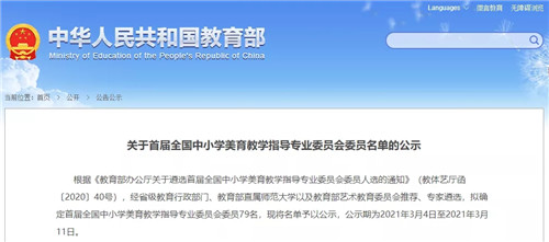 日前 教育部网站公布了 首届全国中小学美育教学 指导专业委员会委员名单 ▼▼▼