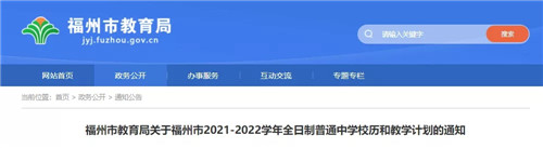 福州市教育局关于 福州市2021-2022学年 全日制普通中学校历和教学计划的通知 (点击“阅读原文” 查看官网详情)