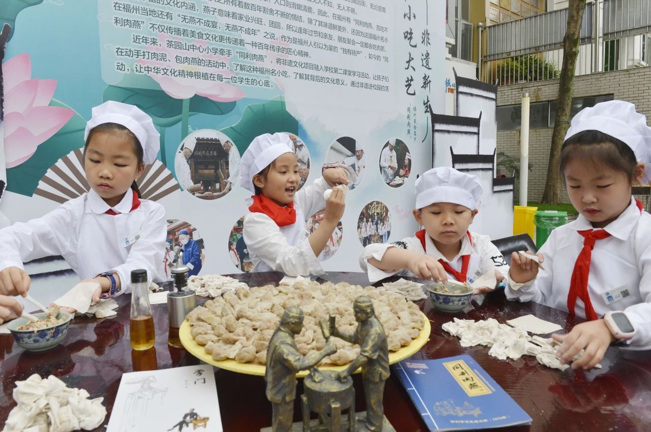 非遗进校园,学生包肉燕 03 善用“加法” 减负增效 日前,福州市南公小学数学教研组邀请福州市教育研究院的老师刘自强开展以《“双减”背景下的课堂教学与作业布置》为主题的数学校本研训活动。刘自强结合丰富的教学实例,剖析了在日常教学中应如何着眼于“理解性”学习,抓住知识本质引导领悟,举一反三,形成更优的方法和解题思路,更好地引导学生表达。“在练习设计和布置方面,应抓住重点、关键内容,把握好层次,控制好作业量和难度,注意习题整合,尽可能一题多用。”南公小学老师薛秀芸表示,“减负”是减去超出学生生理和心理发展能力以外的学习任务,减去学习活动中机械重复的作业练习,减去过时、烦琐、与实际应用无关的教学内容和教学方法,摒弃仅以学生成绩评判教与学效果的评价方法。 “减负”的同时还要“增效”,教师应聚焦课堂,提高教学效率。 ——鼓二小教育集团老师们给教师加点“研”、给课程加点“趣”、给作业加点“料”、给课堂加点“技”、给课后加点“力”,以“五加”促“双减”。 ——福州市鼓山新区小学开展优秀教师教学经验分享会,通过分享最新的教学理念和课堂设计范例,共育“双减”课堂,互促学科融合,努力培养与激发学生潜在的多元智能,促进学科融合; ——台江实验小学开展片区教师技能培训,福州市教育研究院教研中心主任仇闽燕用鲜活生动的案例,深入浅出地为大家解释如何提高教师技能,展示高效课堂; ——闽侯红峰小学召开“家校携手话‘双减’,凝心聚力促成长”家委会会议,解读政策,家校形成合力落实“双减”政策; ……