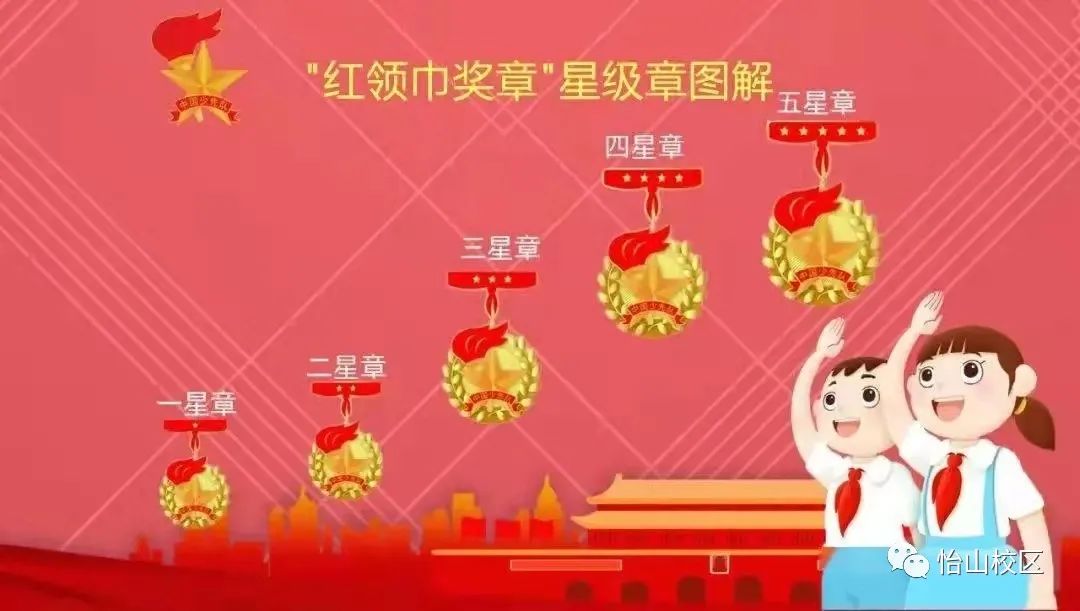 03星级章 星级章是“红领巾奖章”的荣誉进阶章,分为个人和集体两个类别,共设五个星级。学校少工委和县级、市级、省级、全国少工委,依次对应一星至五星章的评选颁发。