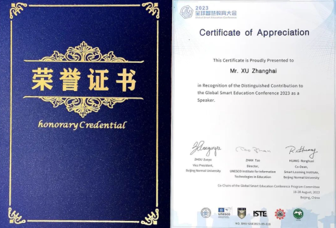 8月18日至20日,由北京师范大学与联合国教科文组织教育信息技术研究所联合主办的“2023全球智慧教育大会”在北京举行。教育部副部长陈杰、中国工程院院士赵沁平、北京师范大学校长马骏出席开幕式并致辞。毛里求斯副总理兼教育、高等教育和科技部部长,喀麦隆中等教育部部长,斯里兰卡教育部部长,土库曼斯坦教育部副部长,突尼斯高等教育和科研部代表等出席开幕式并展开高级别对话。本次大会国际国内嘉宾超过300人,现场参会代表逾1200人。 大会以“教育转型与数据治理”为主题,包括开幕式、16个主题论坛和闭幕式环节,邀请了全球教育与科技领域的院士、专家学者、国际组织代表、政府官员、师生和行业企业代表等演讲,同期举办智慧教育展。通过主题论坛、高端对话、工作坊等形式,分享智慧教育领域的新趋势、新理论、新技术,传播智慧教育解决方案和优秀案例。大会发布了《“互联网+教育”基本理论创新成果》。 大会由北京师范大学智慧学习研究院、教育学部、心理学部、中国教育与社会发展研究院、互联网教育智能技术及应用国家工程研究中心等承办,并联合UNESCO-IITE、ALECSO、COL、ISTE、SEAMEO以及教科文高教处、教科文农教中心、中国基础教育质量监测协同创新中心、虚拟现实技术与系统全国重点实验室、教育部教育信息化战略研究基地、中国信息技术教育杂志社等协办。 受市委教育工委书记、市教育局党组书记、局长游昕委托,市教育局专职副总督学徐章海参加会议并以“赋能与重塑:教育数字化转型的福州实践”为题作推进区域教育数字化专题发言,向全球分享智慧教育示范区创建的“福州方案”。据悉,福州市教育局为受邀参会的福建省教育系统唯一一家单位。 赋能与重塑:教育数字化转型的福州实践 ——在2023全球智慧教育大会上的专题发言 (摘要) 福州市素有“一片三坊七巷,半部中国近现代史”之美誉。这里是习近平新时代中国特色社会主义思想的重要孕育地和实践地。很荣幸受邀参加本次全球智慧教育大会。 党的十八大以来,福州市教育系统深入贯彻落实习近平总书记关于数字中国和教育数字化的重要论述,主动融入“数字福建”和“数字福州”建设,认真执行教育部“应用为王、服务至上、简洁高效、安全运行”的战略行动原则,以入围第二批全国智慧教育示范区创建为契机,深耕区域教育数字化,探索教育治理新路径,助力福州教育数字化转型、高质量发展。 一、抢占教育数字化转型新高地新赛道 依托“数字福州”,下好“先手棋”。习近平总书记在福建工作期间,提出了建设“数字福建”的重大部署。长期以来,福州坚持“3820”战略工程思想精髓不动摇,跑好历史“接力棒”,努力在全省当龙头、走前列、作示范,经济总量从1990年102.4亿元增长到2020年跨入万亿俱乐部并领跑福建,与此同时,“数字福州”建设跑出“加速度”,“数字中国”建设峰会永久落地福州市。福州充分释放“智慧城市”建设红利,全力支持创建全国智慧教育示范区,让智慧城市延链补链强链数字教育,通过与“e福州”城教结合,赋能重塑教育,形成智慧教育新生态,努力提供令老百姓满意的“数字化、便利化”教育服务,“e福州·慧教育”一步步成为现实。 提前布局新基建,下好“关键棋”。福州市确立“1+4+N”的数字教育生态体系,以集约化思路推进数字化新基建,实现市、县(区)、校三级共建共享。“1”是教育管理公共服务平台,是基础能力支撑底座和核心中枢,构建了教育信息化标准规范、运营管理、运维管理、安全管理四大体系,打造了基础能力支撑、大数据中心、教育应用管理三大服务能力。“4”是4个核心业务系统:智慧校园综合管理系统服务学生的学习发展,服务教师的教育教学,服务学校的管理能力提升;教师职业能力建设管理系统,促进教师职业生涯全生命周期的数字化管理;教育装备应用运维管理系统为全市各校教育资产精细化规范化管理提供支持;“榕教之窗”政务服务系统开足服务窗口,让数字教育发展成果惠及全市人民。 鼓励多样特色发展,下好“一盘棋”。“1+4+N”目标指向协同创新,鼓励先行先试,示范引领。这里的“N”指除“1+4”以外的市级应用系统及各地各校自主建设的应用系统,构建“百花齐放”的数字化应用发展大棋局、“一盘棋”。我们鼓励各地各校基于自身需要自建系统,实现多样化服务、特色化发展,提升教育数字化水平。最终,“1+4+N”将打造成全市统一的教育大数据中心,实现“一数一源、同源同步”的数据驱动模式,为全市教育提供科学精准的决策支持,提升教育治理和服务水平。 二、做大做强数字教育应用场景 赋能学校信息化治理。作为全市校级应用管理平台的福州市智慧校园综合管理系统,设计伊始便遵循“学校全覆盖、学段全包含、接入全畅通、场景全贯穿”的理念,满足中小学幼儿园各学段需求,覆盖全市2487所学校,为全市信息化建设和运用打下坚实的基础。各学段数据统一管理、统一运用;通过标准对外开放接口,保障各级应用接入畅通;建设全学段贯穿应用体系,比如从幼儿园到高中的德育综合素质评价,在不同学段以不同的应用形式实现,形成的过程记录和评价报告可调取查看分析、跨学段运用。 赋能教育优质均衡发展。福州市现已成立194个基础教育阶段教育集团,
