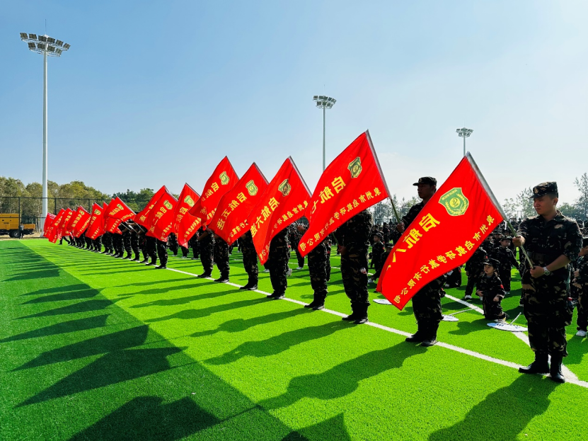 升旗仪式上,英姿挺拔的教官们身着军装,迈着整齐的步伐出旗。气势磅礴的国歌奏响时,全场齐唱国歌,小小兵们向国旗行礼,目光炯炯,眼神坚定。鲜艳的五星红旗像一团炽热的火焰迎风飘扬,在孩子们的心中播下了一颗爱国的种子。 教官们精彩的展示,让小小兵们发出阵阵惊叹和掌声,眼中充满了无限仰慕之情。充满仪式感的授旗仪式,是力量与信仰的传递,更是团结与责任的凝聚,代表着本次“小小兵”全民国防教育体验之旅正式开启。