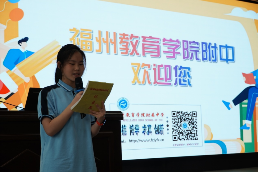 最后,福州教育学院附中2023届初中优秀毕业生陈妍瑾同学、2023级初一2班江腾琳同学分别作为学生代表介绍了在教院附中的学习生活。她们感恩学校,并表示学校为每一位同学提供多元、均衡、个性化的教育,让每一个同学都能找到属于自己的成长轨迹。