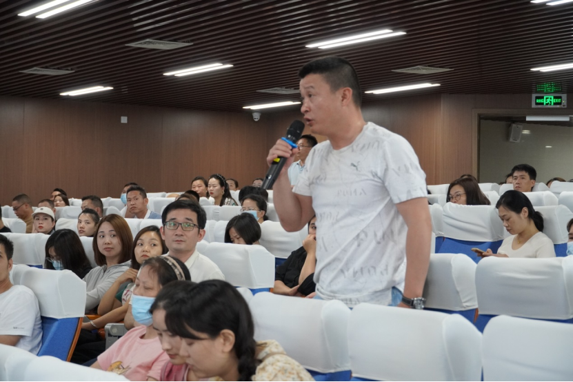 共拥美好未来 会后,张炳坤副校长、德育处刘晓洁主任、教务处林昱主任、安办阮新宇主任对许多家长对各自关心的问题,进行耐心解答。