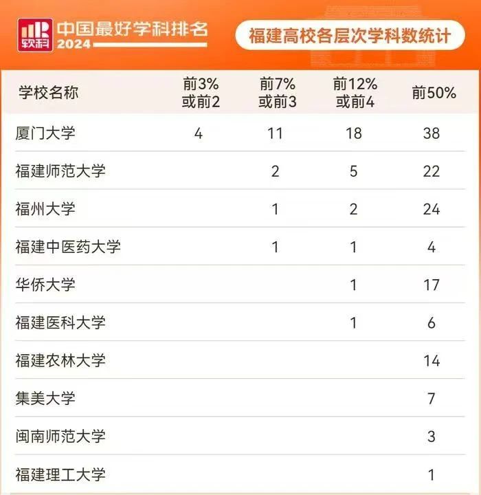 进入新时代,福建师范大学这所质朴沉静的学府,与时代同行,先后被确定为福建省人民政府与教育部共建高校、福建省重点建设的高水平大学、福建省一流大学建设高校、福建省第二轮“双一流”建设A类高校,踏上了承前启后、再创辉煌的新征程。 学科建设成效显著 教育部第五轮学科评估上榜学科31个、占省属高校25%,其中A类学科3个、占省属高校75%,AB类学科18个、占省属高校36%,均居省属高校首位、全国师范院校前列,有力支撑教育强省建设。10个学科进入ESI全球排名前1%、12个学科上榜USnews世界学科排名、13个学科上榜软科世界一流学科排名,2024软科中国大学分领域评级显示,位列全国高校文科实力第46位、理科实力第53位。