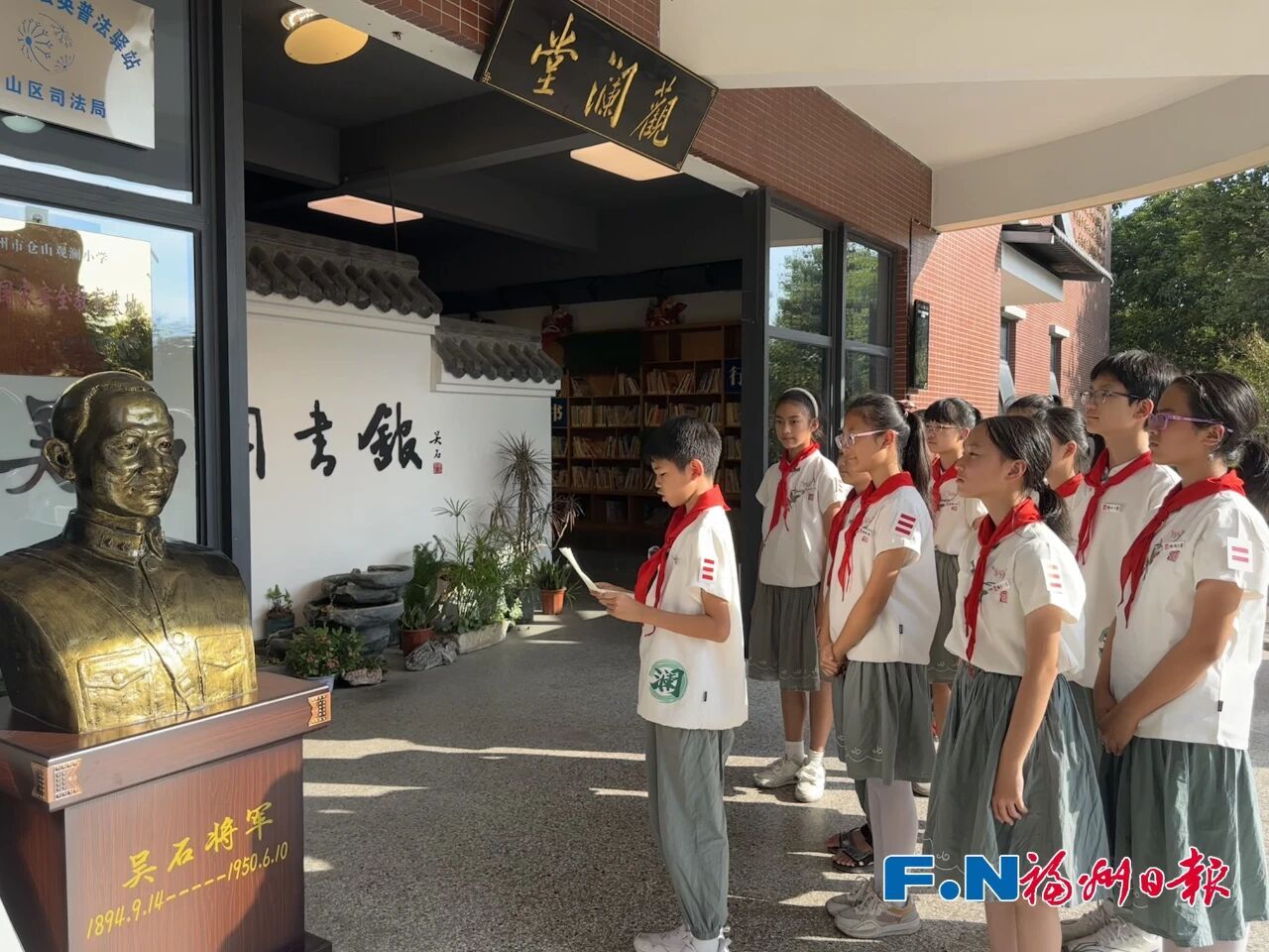 观澜小学党支部书记、 校长李家琪告诉记者 这处图书馆的命名 是对吴石未竟心愿的延续 当年,吴石的长孙女吴红和螺洲的亲人们追忆父辈时提及,吴石曾想回乡办个小图书馆,让乡亲们免费借阅书籍。“为了纪念吴石、教育后人,学校图书馆建成后,便挂上了‘吴石图书馆’的名称。”李家琪说。 在观澜小学 红色基因不只是一处名称 更存在细节里 图书馆旁的吴石介绍墙图文并茂,是师生驻足学习的“红色打卡地”;依托图书馆,学校以吴石本名“吴萃文”成立“萃文读书会”,定期通过读书沙龙、美文分享、角色朗读等形式,让师生汲取知识,传承红色基因。此外还有以吴石的字“虞薰”命名的“虞薰讲解团”,其成员都是经过严格选拔、培训的学生。看到记者来访,孩子们立即生动地介绍起吴石的革命事迹。 “为了让革命先辈的事迹走进学生心里,此前我们还邀请吴石的后人来到学校,分享英烈事迹。这些鲜活的故事, 让英雄形象不再只是史料里的文字,而是同学们眼中可感、可学的榜样。”李家琪介绍道。 除了家乡小学 吴石的青春足迹 还印在福州第十四中学 和福州格致中学的校史中 成为莘莘学子的红色坐标 |