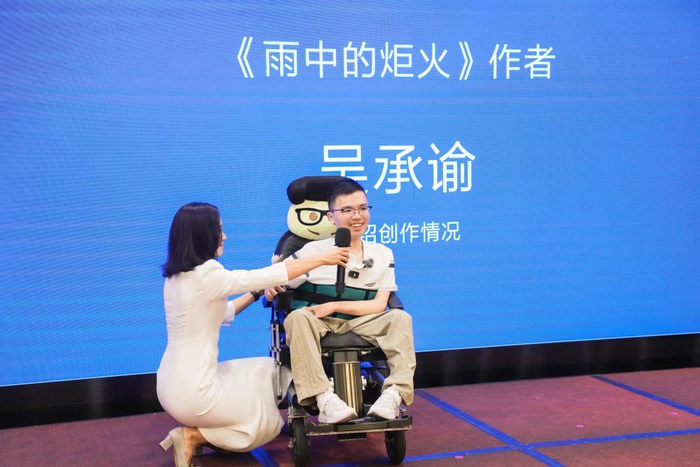 “我的双手已经没有力气长时间握笔写字,也没有力气在电脑键盘上熟练地敲击。但幸运的是,我的手指还留存着在屏幕上轻轻滑动的力气,所以这本书的每一个字,每一句话,都是我用手指在手机屏幕上一笔一画画出来的。”10月20日上午,由福建省委宣传部指导,福建商学院、福建省残疾人联合会、海峡出版发行集团主办,福建省作家协会、石狮市委宣传部、福建教育出版社承办的《雨中的炬火》新书发布会在福建会堂举行。该书作者吴承谕坐在轮椅上,用坚定的声音分享创作经历,让在场的人无不动容。