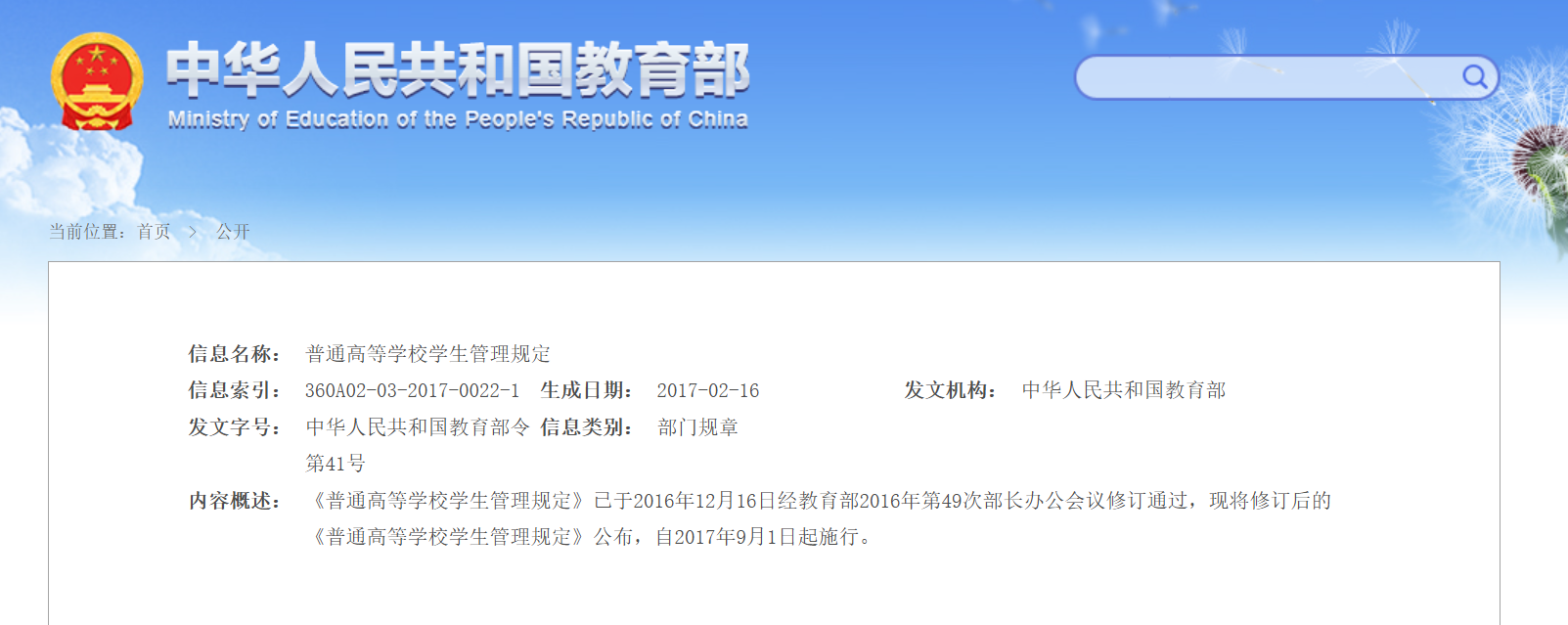2017年,教育部发布修订后的《普通高等学校学生管理规定》。规定第二十二条指出,学生一般应当在被录取学校完成学业。因患病或者有特殊困难、特别需要,无法继续在本校学习或者不适应本校学习要求的,可以申请转学。 第二十二条 学生一般应当在被录取学校完成学业。因患病或者有特殊困难、特别需要,无法继续在本校学习或者不适应本校学习要求的,可以申请转学。有下列情形之一,不得转学: (一)入学未满一学期或者毕业前一年的; (二)高考成绩低于拟转入学校相关专业同一生源地相应年份录取成绩的; (三)由低学历层次转为高学历层次的; (四)以定向就业招生录取的; (五)研究生拟转入学校、专业的录取控制标准高于其所在学校、专业的; (六)无正当转学理由的。 学生因学校培养条件改变等非本人原因需要转学的,学校应当出具证明,由所在地省级教育行政部门协调转学到同层次学校。 规定强调,转学学生高考成绩不得低于拟转入学校相关专业同一生源地相应年份录取成绩;不得由低学历层次转为高学历层次。 也就是说,不能由低转高,只能从高转学到低一级院校。如:从福州大学转兰州交通大学,福州大学为“211工程”高校,兰州交通大学普通公办本科,且转学学生当年录取福州大学的高考分数高于兰州交通大学当年当地该专业录取分数。再如:“985工程”高校重庆大学学生转学到“211工程”高校华北电力大学,从“985”到“211”,且两所学校电子信息类专业均为625分,专业同分是可以。 对大学转学,你怎么看? |