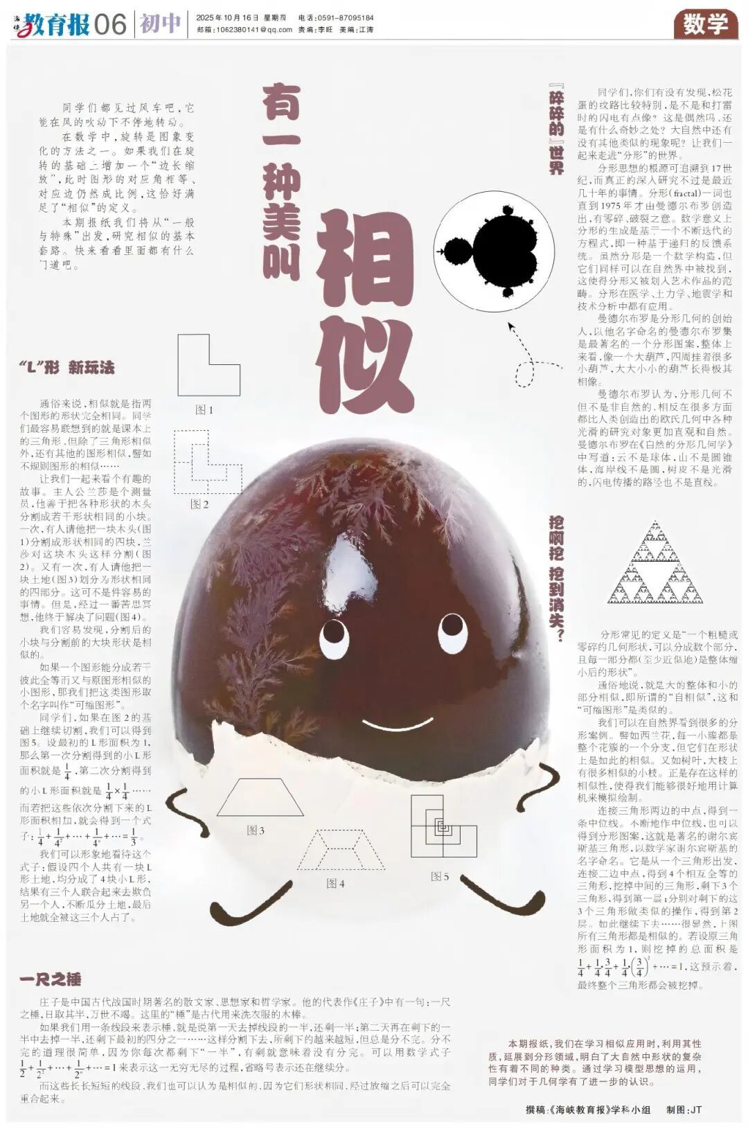 围绕相似理论展开 介绍相似图形的定义、性质 及其在实际生活中的应用 用分割图形的角度 认识“可缩图形” 版面内容含蕴含了代数推理过程 这可是近几年的考试热点 同学们可以尝试写出推导过程 物理版