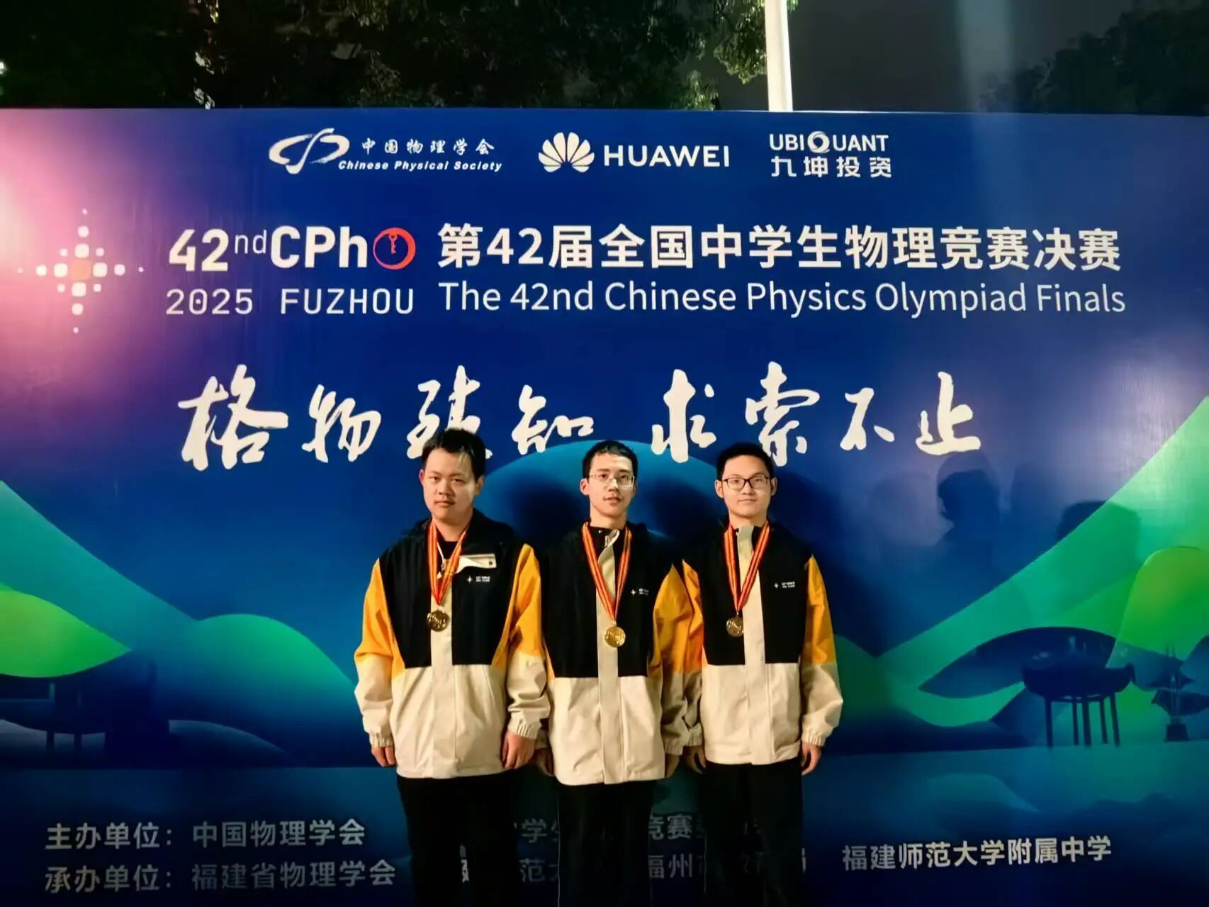 ▲福州三中获奖学生合影 福州三中竞赛负责人陈斌表示,三中近几年物理竞赛成绩稳步提升,今年3人成功入选福建省代表队,12人荣获省级一等奖,其中,刘家齐同学以复赛全省第1名的优异成绩入围省队。本届国赛中,三中取得2金1银的好成绩,金牌人数及“省一”获奖人数均创近年新高。 福州三中一直以来都高度重视学科竞赛人才的培养,致力于为学生提供全面、专业的竞赛指导,形成了多维度、多层次的协同支撑体系:学校充分发挥钱学森书院拔尖人才培养示范引领作用,为不同年级学生的物理竞赛学习需求量身定制个性化培养方案,为学科竞赛人才的培养奠定了系统化、阶梯式的坚实基础。 “以洪玉渠、葛渊波、陈新杭等老师为核心的竞赛指导团队,他们长期牺牲周末及寒暑假的休息时间开展专题强化辅导,针对每位学生的薄弱环节进行精准指导;密切关注学生心理状态,在发现学生出现焦虑情绪时及时开展一对一谈心疏导;更常常主动延长工作时间,陪伴学生自习到深夜,用无微不至的关怀为学生构筑起强大的心理后盾,成为莘莘学子在漫长备考路上的精神支柱和坚强后盾。”陈斌说。 “三中的学生更多是基于热爱和坚持走到今天。物理组有一个传统,会给学生每天煮一个蛋。我们有个口号:每天一个蛋,物理加油干。”陈斌坦言,这是属于福州三中物理竞赛组的共同文化认同和记忆归属。 明年 第43届全国中学生物理竞赛决赛 将在广州二中举办 让我们共同期待 福建学子的风采吧! |