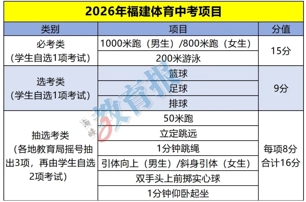 刚刚,2026年龙岩市 初中毕业升学体育考试 抽选考类测试项目 抽签结果公布 抽选考类六选三是:1分钟跳绳、一分钟仰卧起坐、双手头上前掷实心球。考生可从三个项目中自选2项考试。