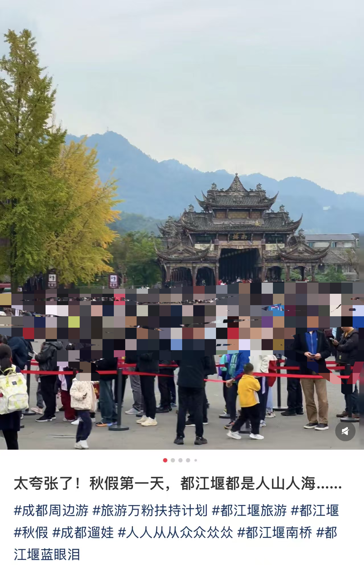 青城山都江堰、九寨沟、毕棚沟、环球影城等各大景区都已被“占领”,高速都堵红了。