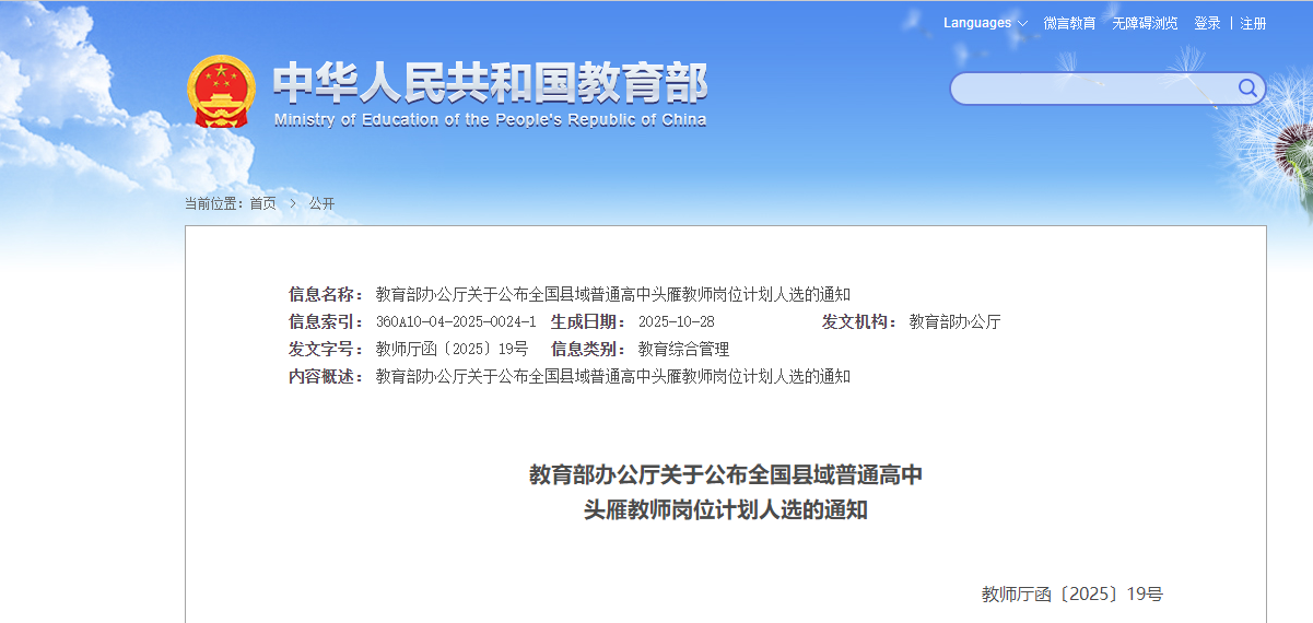 | 2025-11-17 10:58 教育部官网 来源: 责任编辑:付丽宁 我来说两句 |