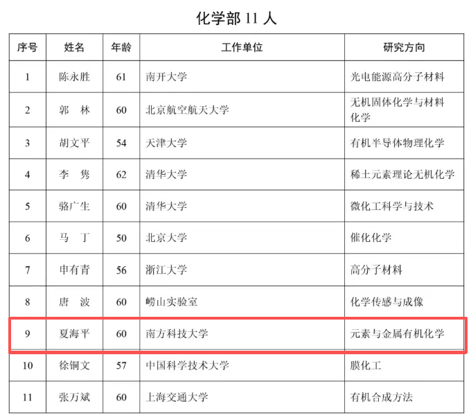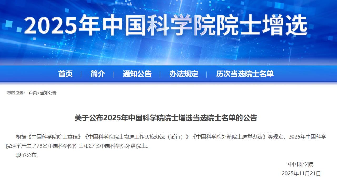 11月21日 中国科学院公布 2025年中国科学院院士增选 当选院士名单 莆田一中校友夏海平 当选中国科学院院士 祝贺!