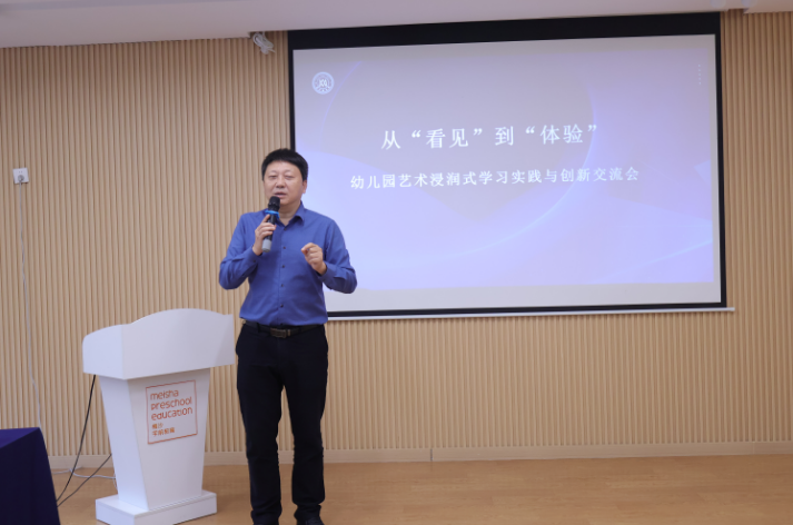 多元实践分享 解锁美育+项目式学习新范式 多位来自闽桂两地幼儿园的负责人与教育专家,带来了兼具实操性与创新性的实践分享,全方位展现美育与项目式学习的融合路径: 万科梅沙教育广西区域负责人孙晓雷先生,系统梳理了梅沙幼儿园在美育领域的深耕历程与丰硕成果,从课程体系搭建、师资团队培养到幼儿成长反馈,呈现了可持续性的美育实践模式。