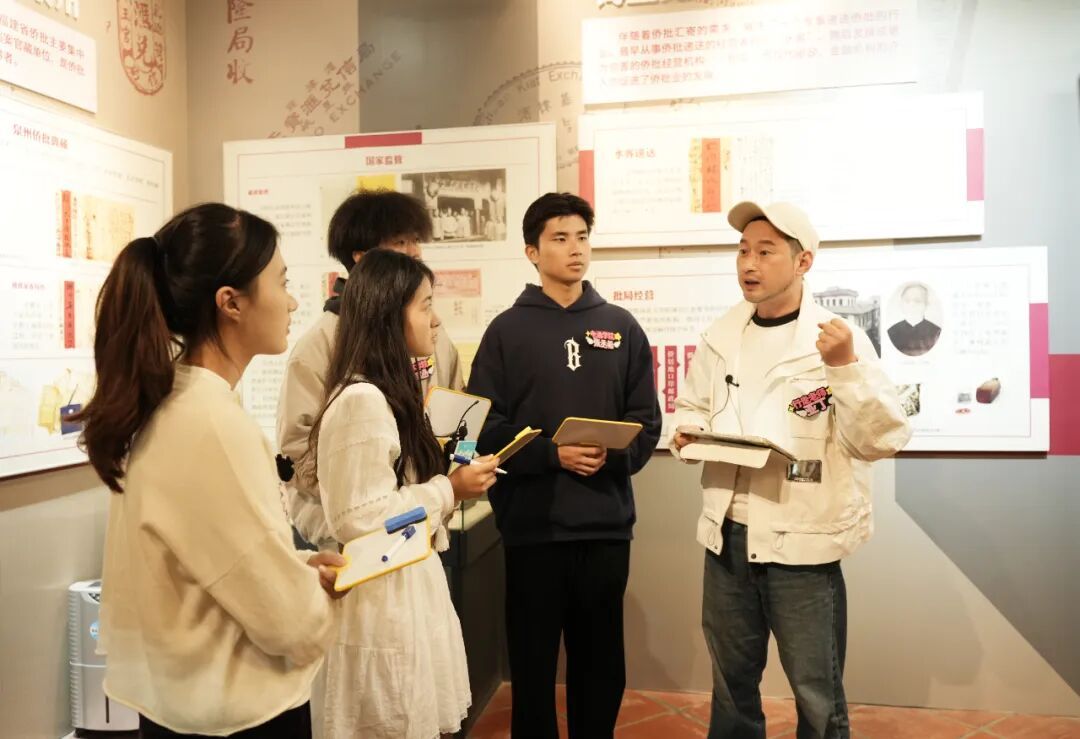 作为土木工程学院学生,吴宸函和林子涵对中山路上的联排式骑楼建筑群展现出了浓厚的兴趣。“不少洋楼既结合泉州民居的传统特色,又融入了海交文化的建筑精华,蕴含着丰富的建筑文化,值得我们专业的学生深入研究。” 现场互动中,学生们通过“泉州华侨连连看”游戏,将李光前、黄奕住、李清泉、胡文虎等侨领名字与“橡胶大王”“糖业大王”等头衔匹配,在欢笑中了解华侨的感人事迹,感悟他们的爱国情怀。 探访百年侨批 读懂通信史上的特殊样本 中山中路345号,两栋中西合璧的洋楼静静矗立。1912年,爱国华侨陈光纯故居在此启建;2021年,其中一栋化身福建首个地市级侨批馆,20万封泛黄的信笺,成了“会说话的家国档案”。