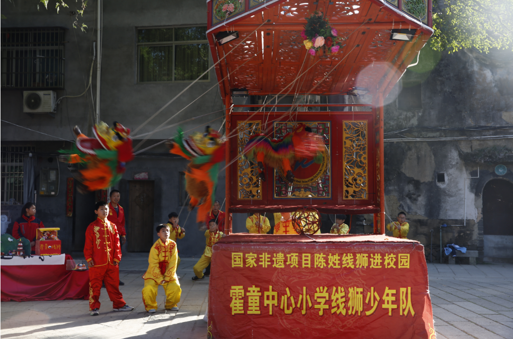 ▲小学生线狮队现场献艺,灵动表演吸引众多来宾驻足观赏,尽显非遗传承活力与美育魅力