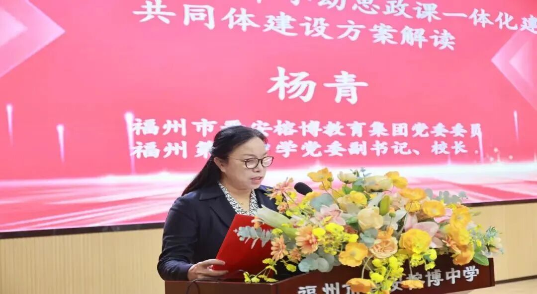 福州第十中学党委副书记、校长杨青宣读了共同体建设方案,从指导思想、目标任务到实施路径、保障机制,全面描绘了一体化建设的“路线图”。方案强调“课程衔接、师资共建、活动共育”,致力于打造具有榕博特色的思政教育品牌。