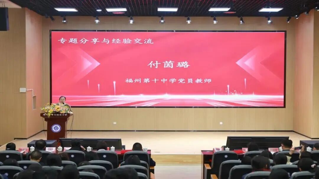 ▲晋安第五中心小学学子朗诵《少年中国说》 初心分享: 平凡岗位上的育人光芒 在专题分享环节,来自榕博教育集团的三位党员教师代表用真挚语言讲述了自己的育人故事。