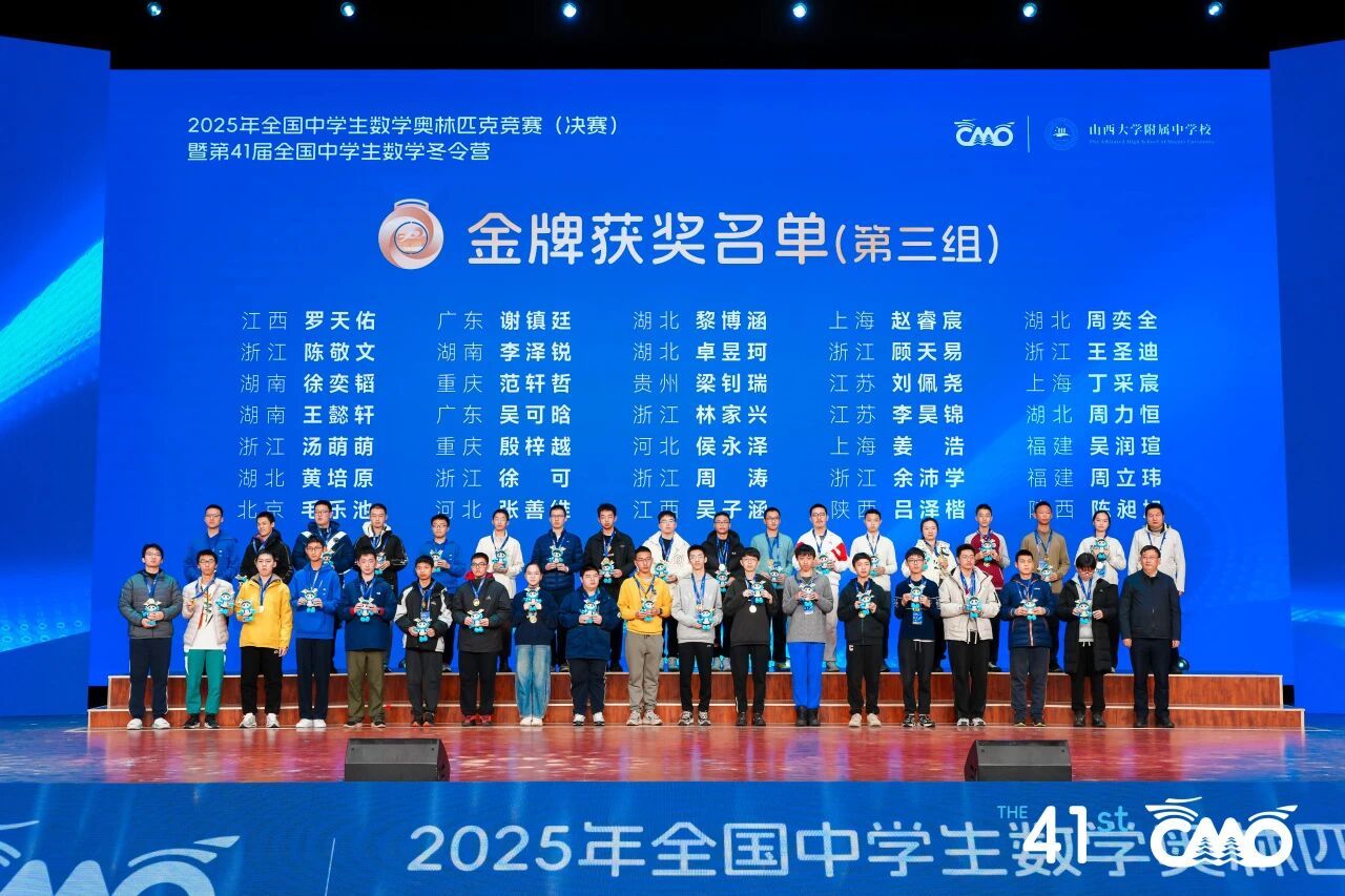 日前 2025年全国中学生 数学奥林匹克竞赛(决赛) 暨第41届全国中学生数学冬令营落幕 本次赛事中 福建省19名参赛高中生共摘得 6枚金牌、10枚银牌、3枚铜牌 其中 福州一中2金3银 福州三中1金 福建师大附中3银 此外 厦门一中王子豪 成为我省唯一入选国家集训队的选手 保送北京大学数学科学学院