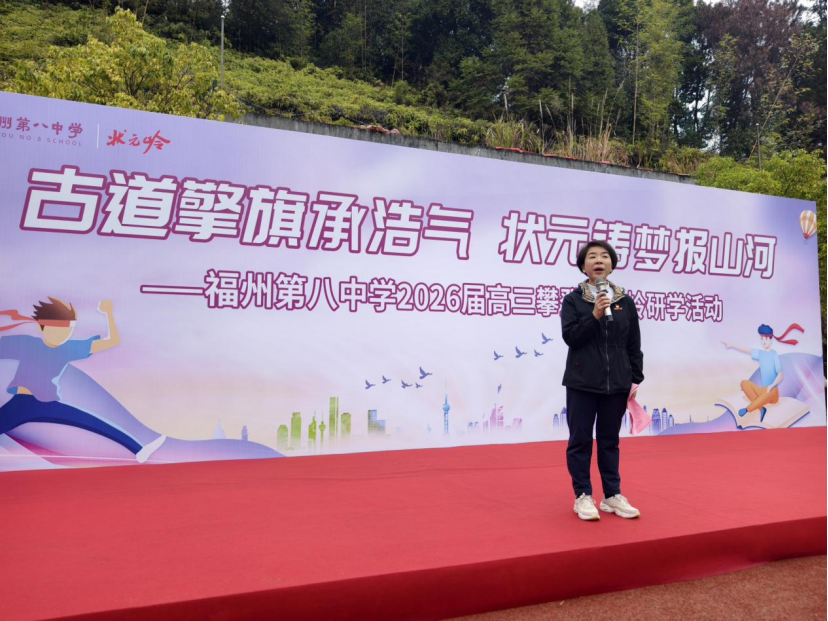 12月13日,南京大屠杀死难者国家公祭日,福州第八中学林晓枫书记带领2026届高三学子赴状元岭开展“古道擎旗承浩气状元铸梦报山河”主题研学活动。这场将历史追思、文化传承与青春担当深度融合的“行走的大思政课”,让学子们在缅怀先烈中铭记国殇,在文化溯源中汲取力量,将爱国情、报国志转化为冲刺高考的奋进动力。