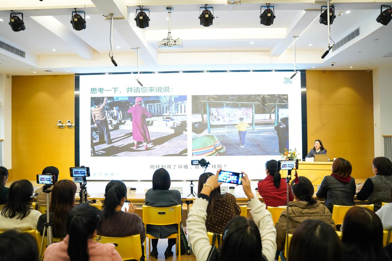 最后,福州教育研究院陈少熙主任的专题讲座《从美化取向到课程价值取向的环境变革》高屋建瓴,结合该园环境改造的具体实践,深入解析如何让环境呼应儿童视角、链接生活课程,实现从环境资源到教育资源的转化,进而促进儿童的学习与发展,具体、深入地落实“儿童友好”。