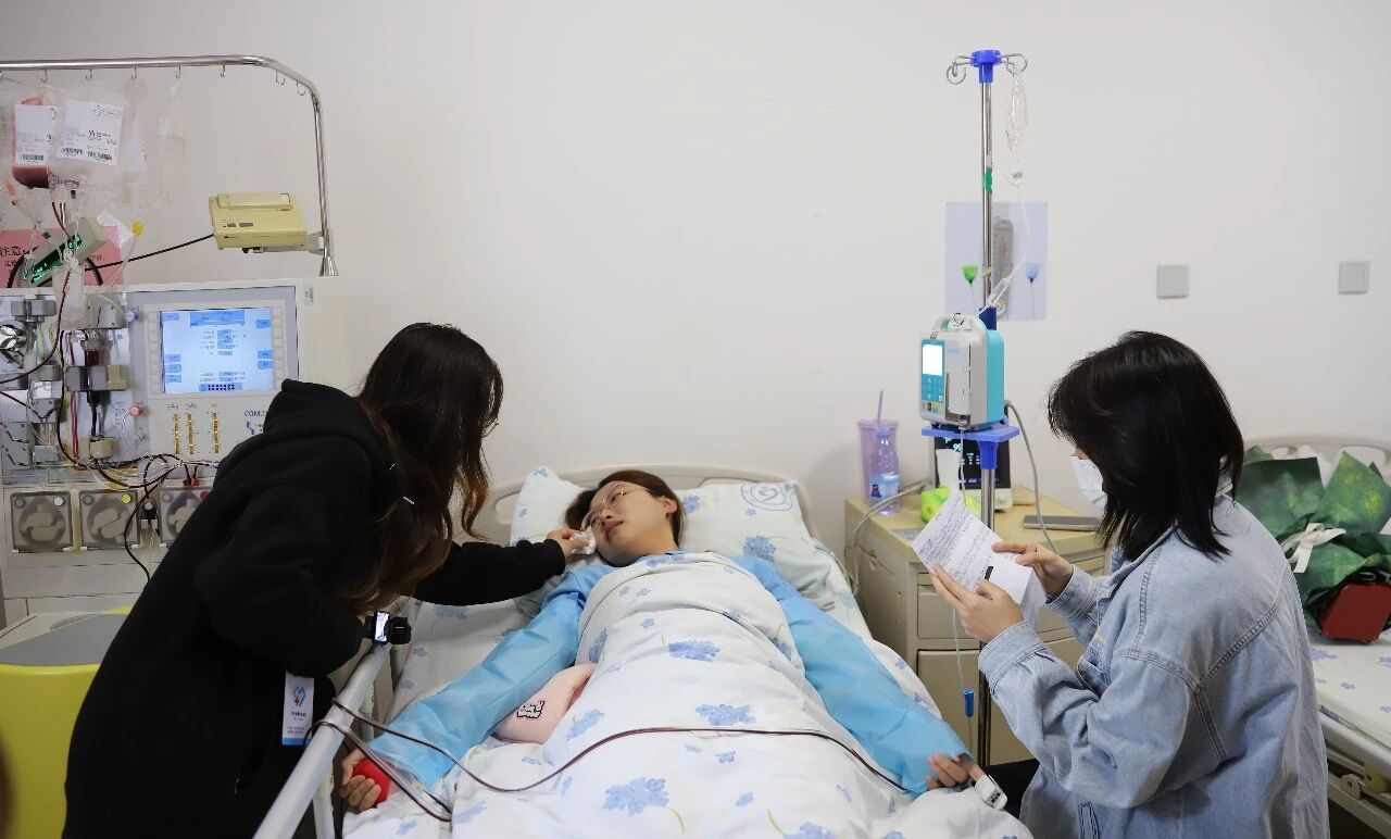2025年9月以来,陈育婷还担任了学院兼职辅导员。她的办公室经常有学生来访、有的咨询学业规划、有的倾诉生活烦恼,也有家庭经济困难的学生来寻求帮助。面对这些学弟学妹,她总能理解他们的心情,并鼓励他们“经济上的困难只是暂时的,重要的是不能失去追逐梦想的勇气。”许多学生在她的帮助下,逐渐找到了方向。她用自己曾经被照亮的人生,去点亮更多年轻的梦想。 让生命之光照得更远 2021年8月,陈育婷在一次献血时报名加入中华骨髓库。2025年12月,在红十字会工作人员和医院医护人员的陪同下,她在捐献同意书上签下名字,履行了自己四年前许下的承诺。陈育婷说,这次的捐献对她而言,是一次“用生命影响生命的体验”。