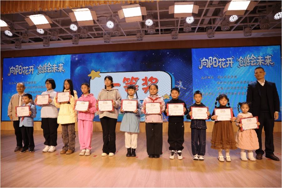 “美育是润泽心灵的甘泉,是涵养少年儿童高尚品格的沃土”,福州市教育局副局长林楠在致辞中向获奖学生表示祝贺并介绍了国家学生资助政策从保障型向发展型延伸的积极举措,阐明“向阳花开”单项奖为特殊困难群体儿童提供了展示才华、追逐梦想的专属平台。 颁奖典礼上,共颁发了优秀奖、三等奖、二等奖、一等奖以及“向阳花开”单项奖和优秀组织奖。来自福州教育学院附属第二小学的获奖学生代表林诗言在发言中分享了她的创作心路:“这次比赛是我带着我对世界的好奇,大胆展开想象、进行探索的一次探索,我把我对宇宙的奇思妙想画进我的作品《宇宙漂流记》里。”
