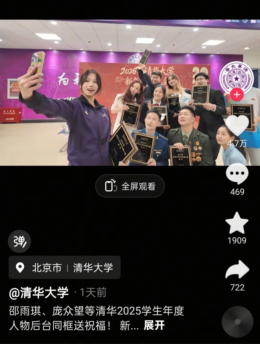 近日 2025年清华大学学生年度人物公布 福建泉州籍 清华大学博士生张铮 位列其中 并于12月31日 清华大学新年联欢晚会接受表彰