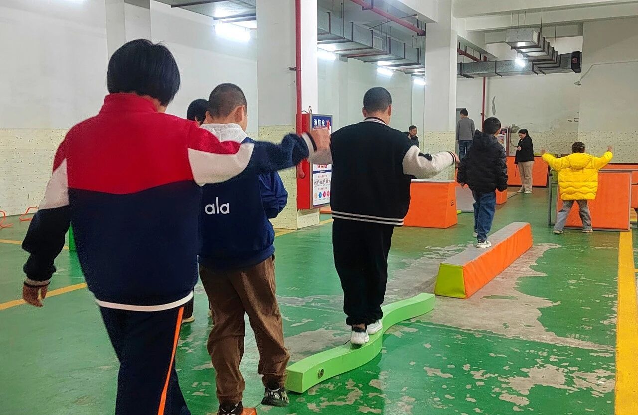 因材施教的课堂,催生了一个个超越自我的故事。曾经怕苦畏难、总想偷懒的学生小吴,在老师和家长的鼓励下,报名参加了龙岩市首届特奥运动会。 “训练时腿酸得想放弃,但老师陪我一起跑,告诉我坚持就是胜利。”回忆备赛时光,小吴目光坚定。最终他夺得了银牌。如今,课后,他总是第一个冲向操场,尽情享受运动带来的快乐。 身患聋哑与脑瘫多重障碍的聋部高二学生小丘,抬手迈步皆需付出数倍努力,却在老师的专业指导下走进篮球场。“篮球让我变得更勇敢,每次进球都特别开心。”小丘用手语表达,脸上写满自豪。如今,他已是校园里小有名气的“篮球明星”。 让运动的快乐风雨无阻 平衡木、爬行架、花样跳绳……为保障学生每日充足运动,让特殊孩子全天候享受运动乐趣,学校在运动环境提升上用足心力。 图
