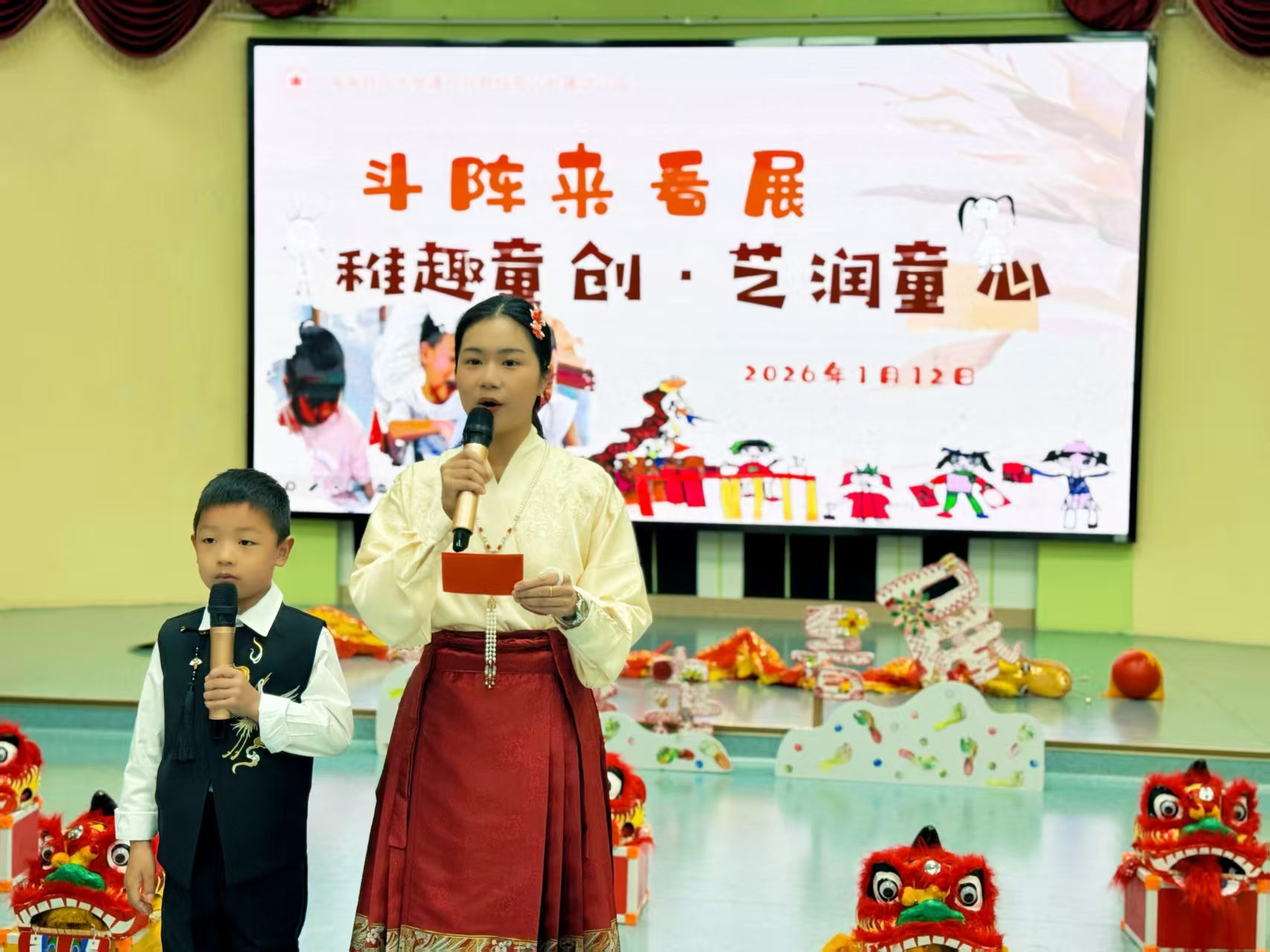 本次发布会以“以童为核、以美为媒、以文为脉”为设计理念,凝聚家园共育合力,让闽南文化在童趣创作中传承。活动伊始,主持人阐释发布会设计初衷与闽南文化内涵,拉开童创展示序幕。各年级段以特色项目为载体,呈现沉浸式美育盛宴。小班围绕“小脚印·大乐园”,分享幼儿园探索历程,展示幼儿亲手制作的专属地图,让项目式学习的探究精神在实践中落地;中班以“闽南韵·游戏乐”为主题,通过情景演绎、四果汤品尝、童玩体验,让幼儿在互动中感受闽南民俗与文化之美;大班聚焦“非遗美·童传承”,创意IP设计、非遗手作作品接连亮相,让传统非遗在童趣创作中焕发新生。