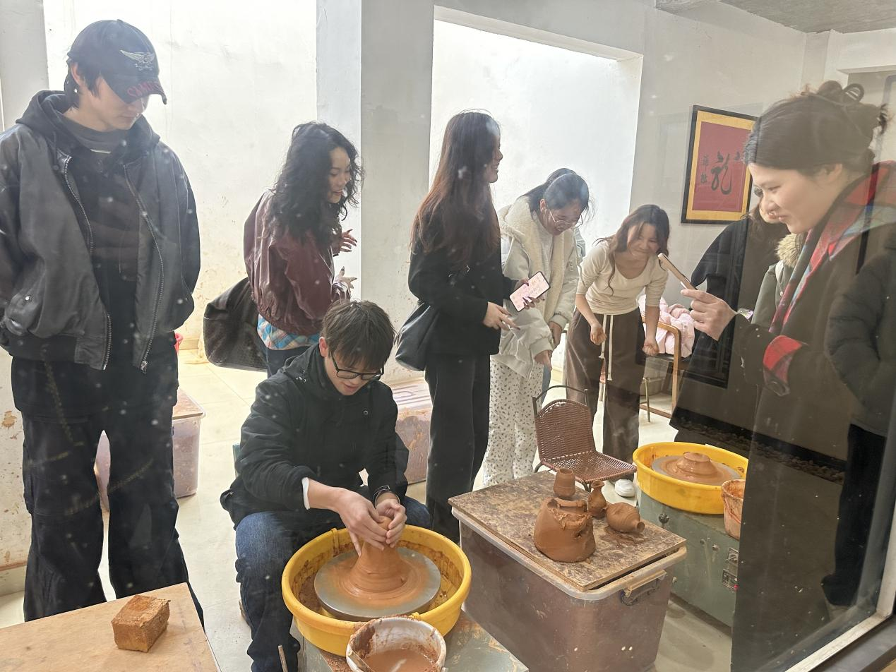▲福建理工大学数字运营与管理微专业的学生们正在进行拉胚体验 下午,学生们与到场的专家学者、非遗传承大师们进行深入交流与学术研讨,非遗传承大师们分享了技艺传承与在数字化时代下面临的机遇挑战。同学们则结合切身体验,畅谈对“技术赋能”与“人文精神”融合的思考。