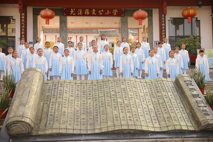 集齐任意5枚不同颜色的阳光币,即可兑换一张“小沈郎铜卡”,并可逐级兑换银卡、金卡,最终指向校园最高荣誉“沈郎之星”。 例如,想获得“书香小沈郎”阳光币,就需要在阅读活动中持之以恒、表现优异。为此,学校专门开设了“读思达”栏目,搭建师生共读、好书推荐的平台。 一位学生在推荐《山海经》时写道:“它告诉我们,中华民族的浪漫与想象的根,自古便深植于这片土地,激励我们永葆对未知世界的好奇与向往。”这样的栏目,让“书香”不再是抽象的评语,而是一段段被触动、被表达的真实心灵历程。 全县共育“三香”之花 文公小学、实验小学以朱子文化立校,是尤溪县深耕地域文化、系统推进“三香教育”的一个精彩缩影。 尤溪县教育局副局长邹起梓告诉记者,在全县层面,一场以 “书香、墨香、乐香” 为核心的“三香教育”正在蓬勃开展。 “一校一案”,在统一的“三香”蓝图下,各校依据自身传统与资源,走出了特色路径。梅仙中心小学深耕“红色书香”,将红色阅读融入血脉;尤溪实验小学着力“翰墨飘香”,构建系统的书法教育体系;尤溪第二实验小学则注重搭建展示平台,让学生的读写成果被看见、被激励。这些举措与文公小学的“经典考级”相映成趣,共同诠释着“三香”的丰富内涵。