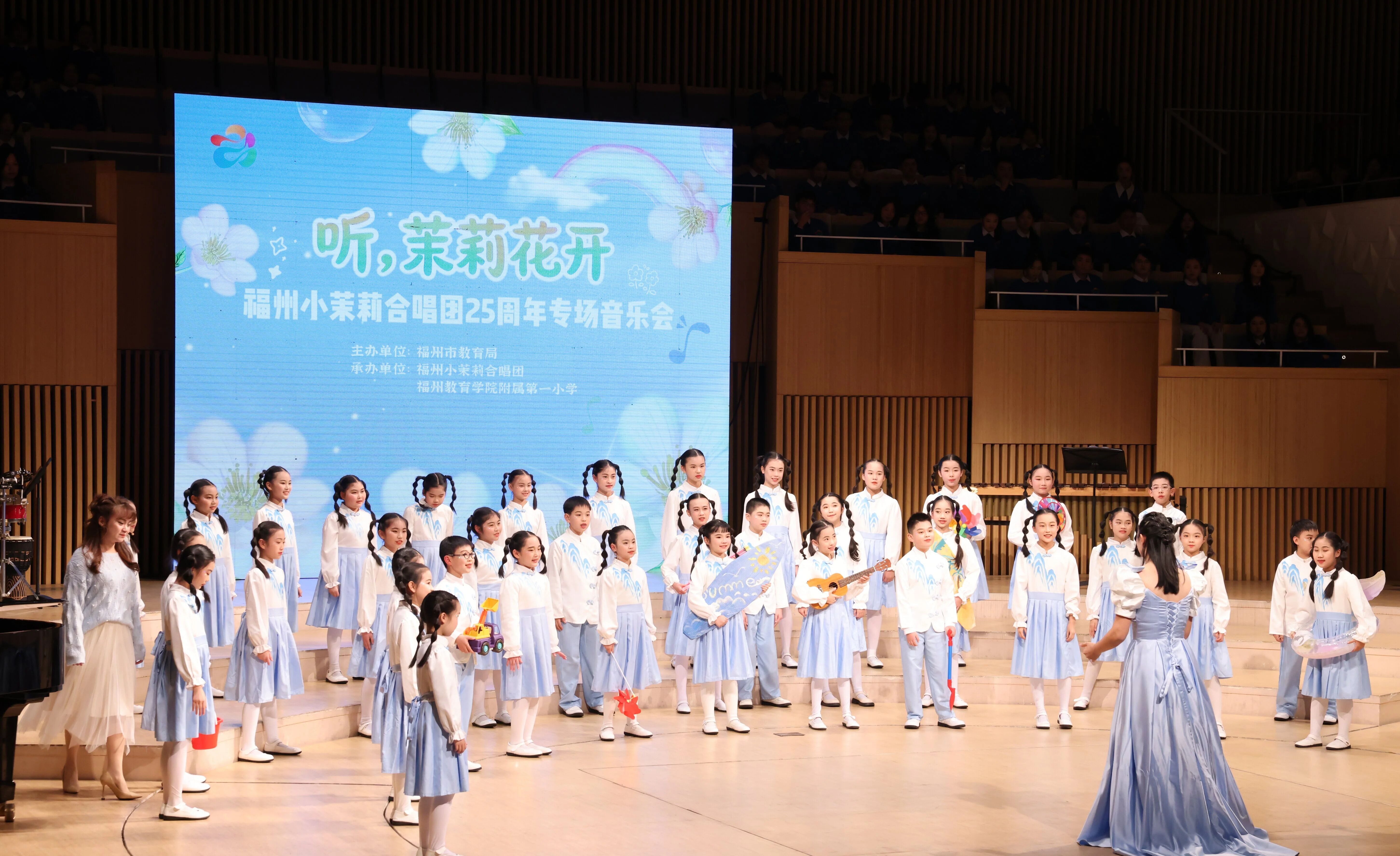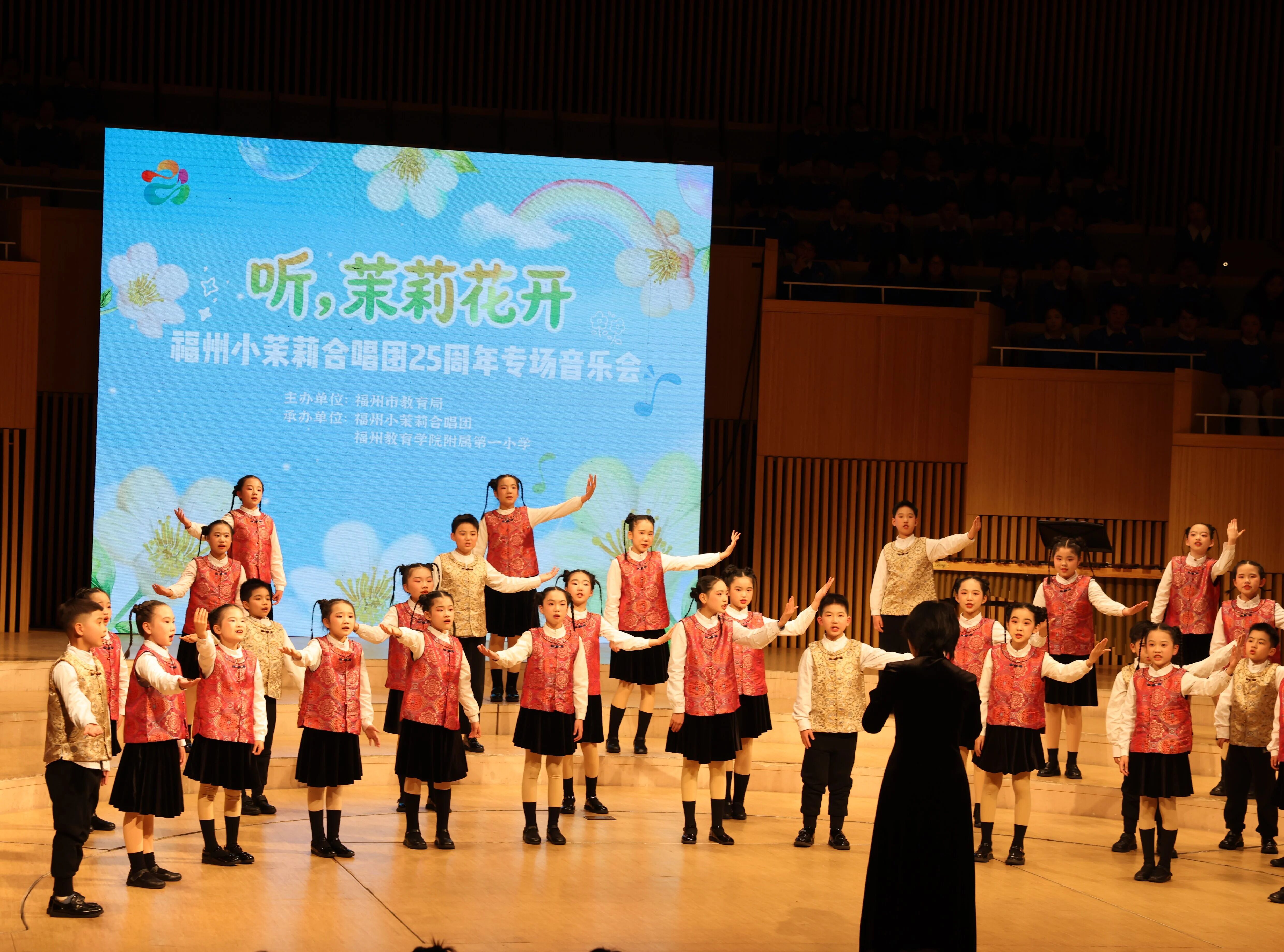 2月10日晚7时30分,福州海峡文化艺术中心音乐厅内灯火通明、座无虚席。由福州市教育局主办,福州小茉莉合唱团与福州教育学院附属第一小学共同承办的“听,茉莉花开——福州小茉莉合唱团成立二十五周年专场音乐会”热烈举办。