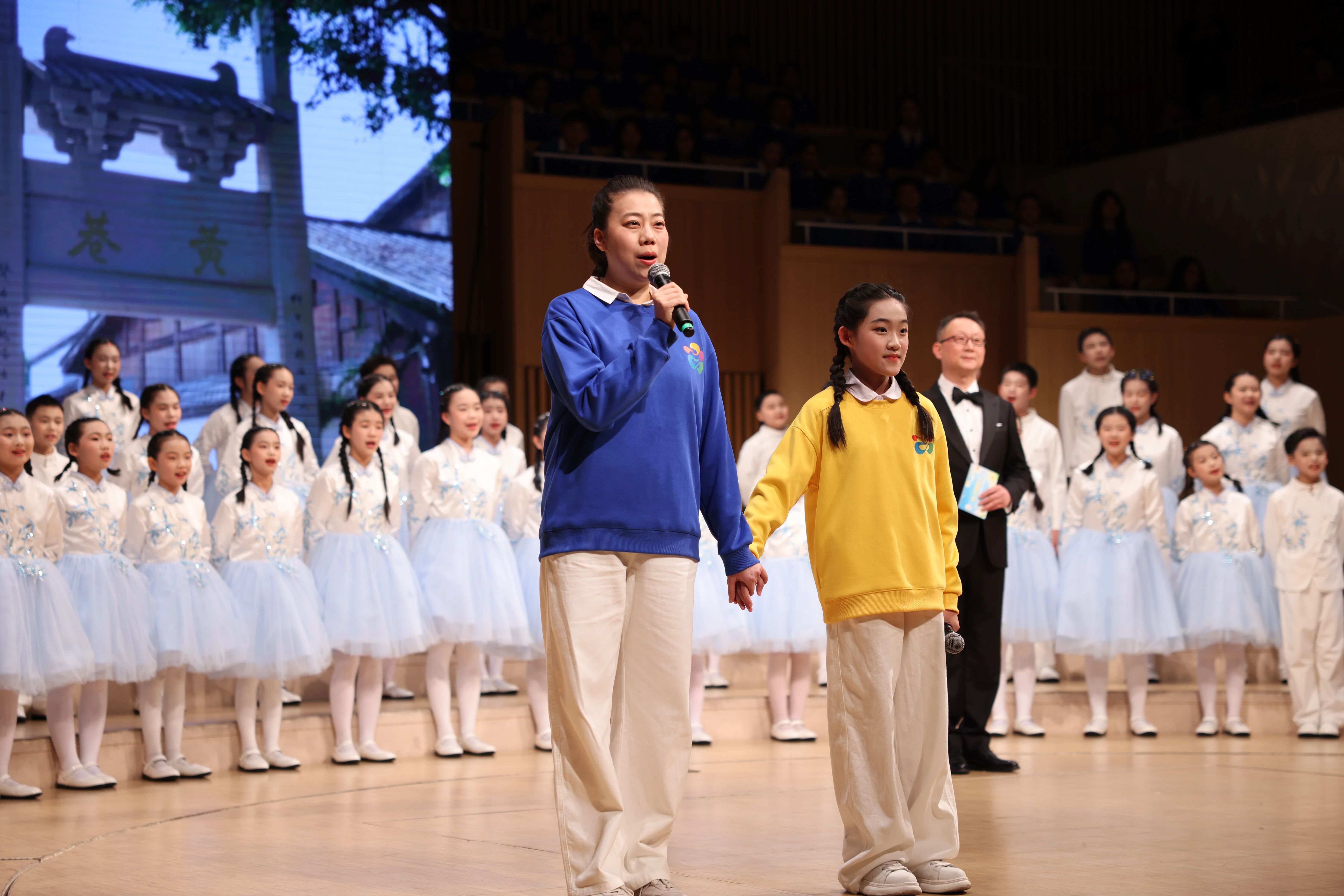 在《快乐的节日》中,孩子们抬手比出饱满的“心”形,跟随节奏左右晃动,灿烂的笑脸充满感染力;在《外婆的澎湖湾》和《让我们荡起双桨》的经典旋律里,三代人的音乐记忆被悄然连接。歌声如时光机,载着满场观众穿梭于二十五载芳华之间。