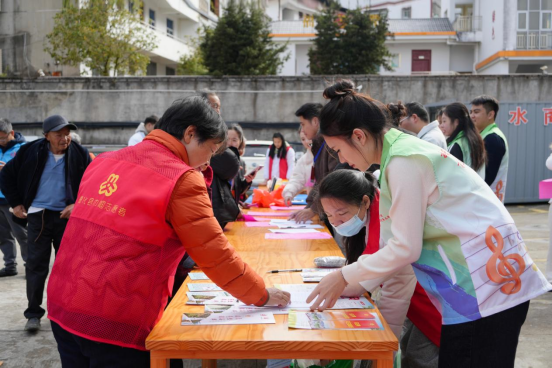 实践队深入德化县的乡镇与社区,开展多场暖心志愿服务。在赤水镇、国宝乡佛岭村,队员们联合当地部门举办新春关爱活动,送上定制春联,展演南音、独唱、合唱等文艺节目,协助健康义诊,让美育与温情走进乡村;在阳光山庄小区,公益演出融合舞蹈、南音等节目,还设置反诈、垃圾分类互动问答,同步开展入户探访,为特殊群体送去慰问。队员们还走进德化多家陶瓷艺术馆,与工艺美术大师交流非遗传承理念,探索“非遗+舞台”“非遗+研学”跨界传播模式,为文旅融合注入青春思路;实践队还受邀参与德化县民政服务站年度交流会,学习基层服务经验,以合唱致敬一线工作者,探索“音舞+民政”美育融合新路径。