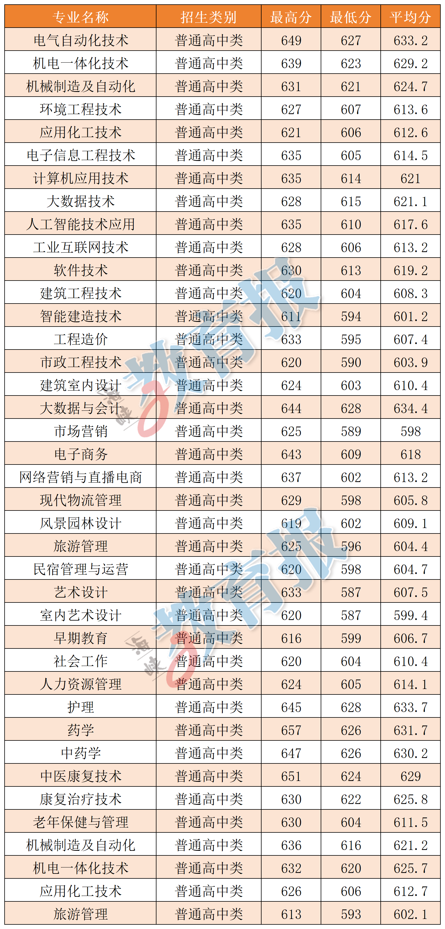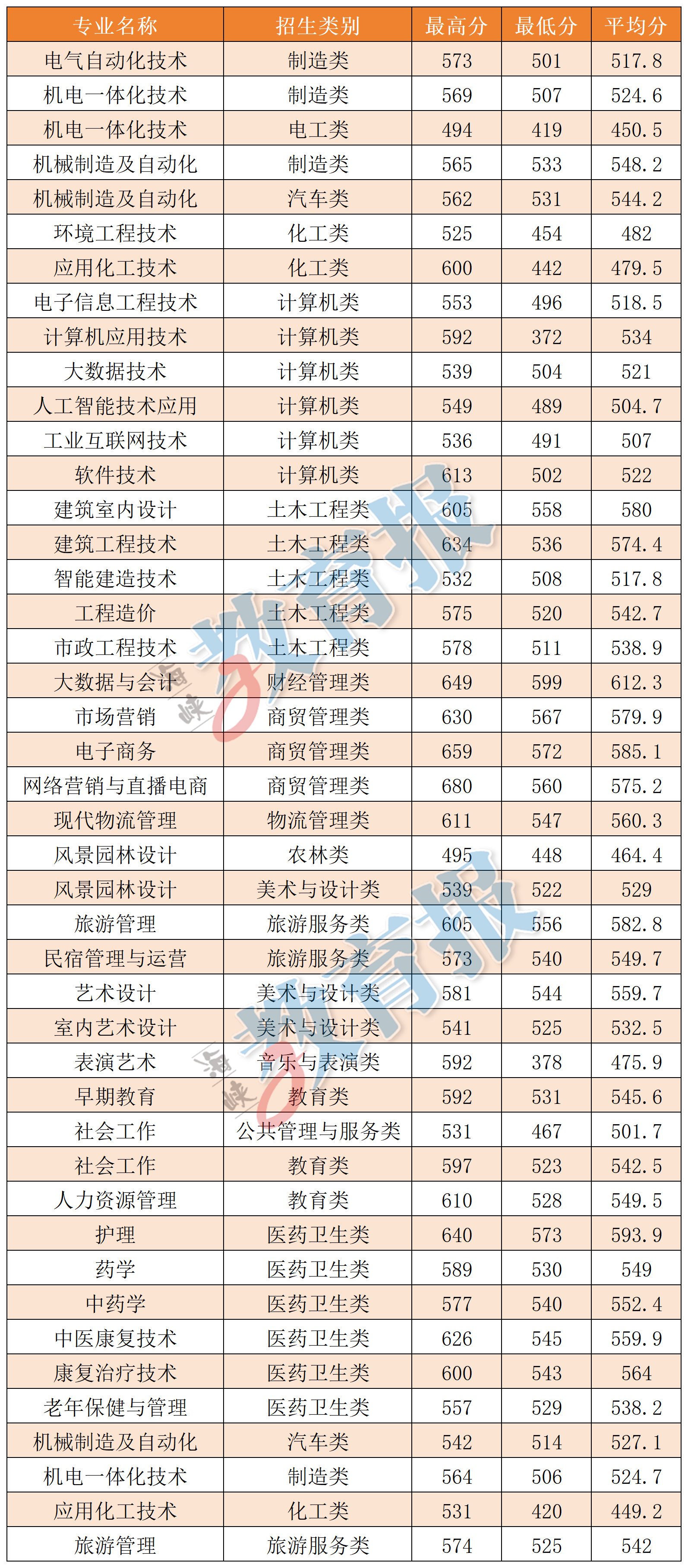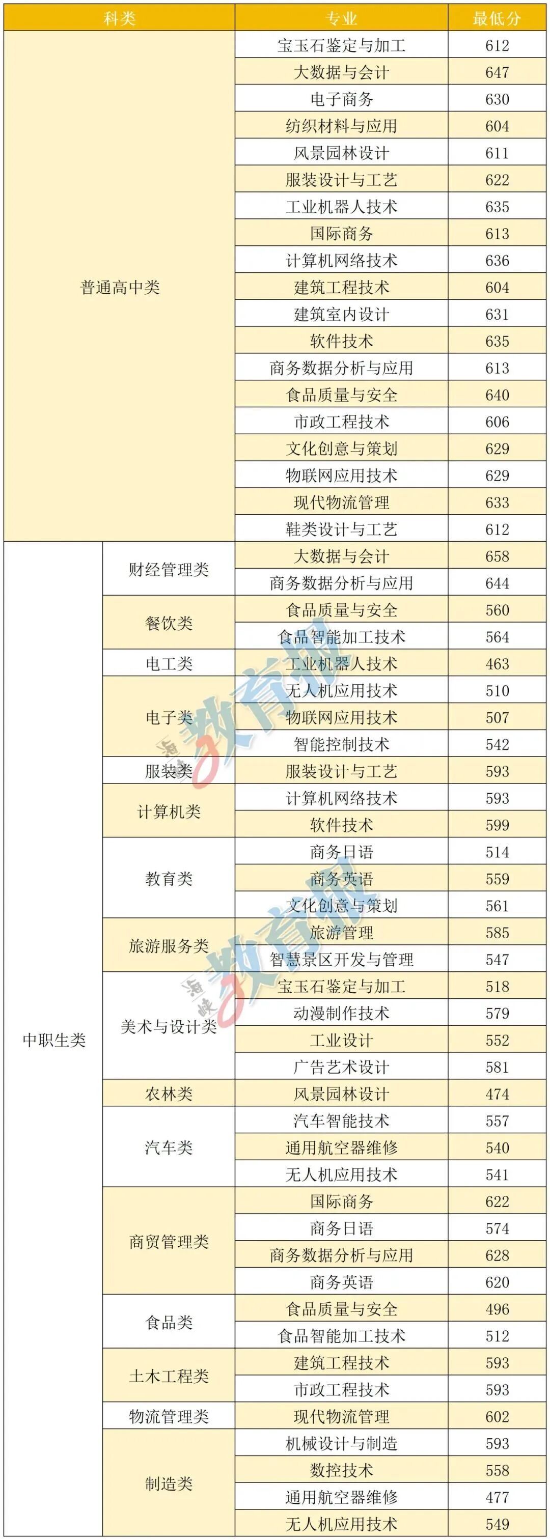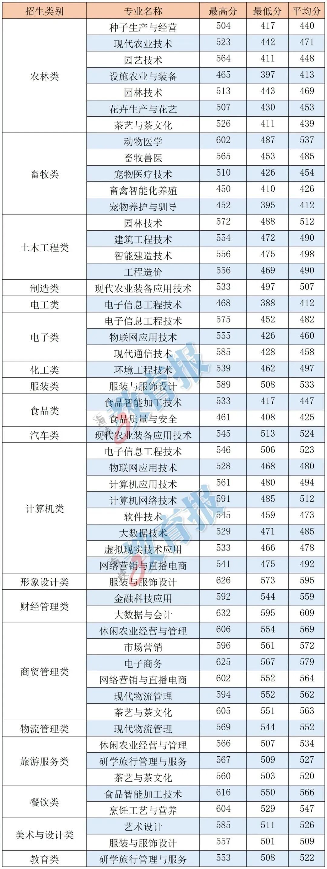注:计算机应用技术专业录取最低分372分为福建省职业技能竞赛获奖考生成绩,实际录取最低分为524分。 【漳州职业技术学院】