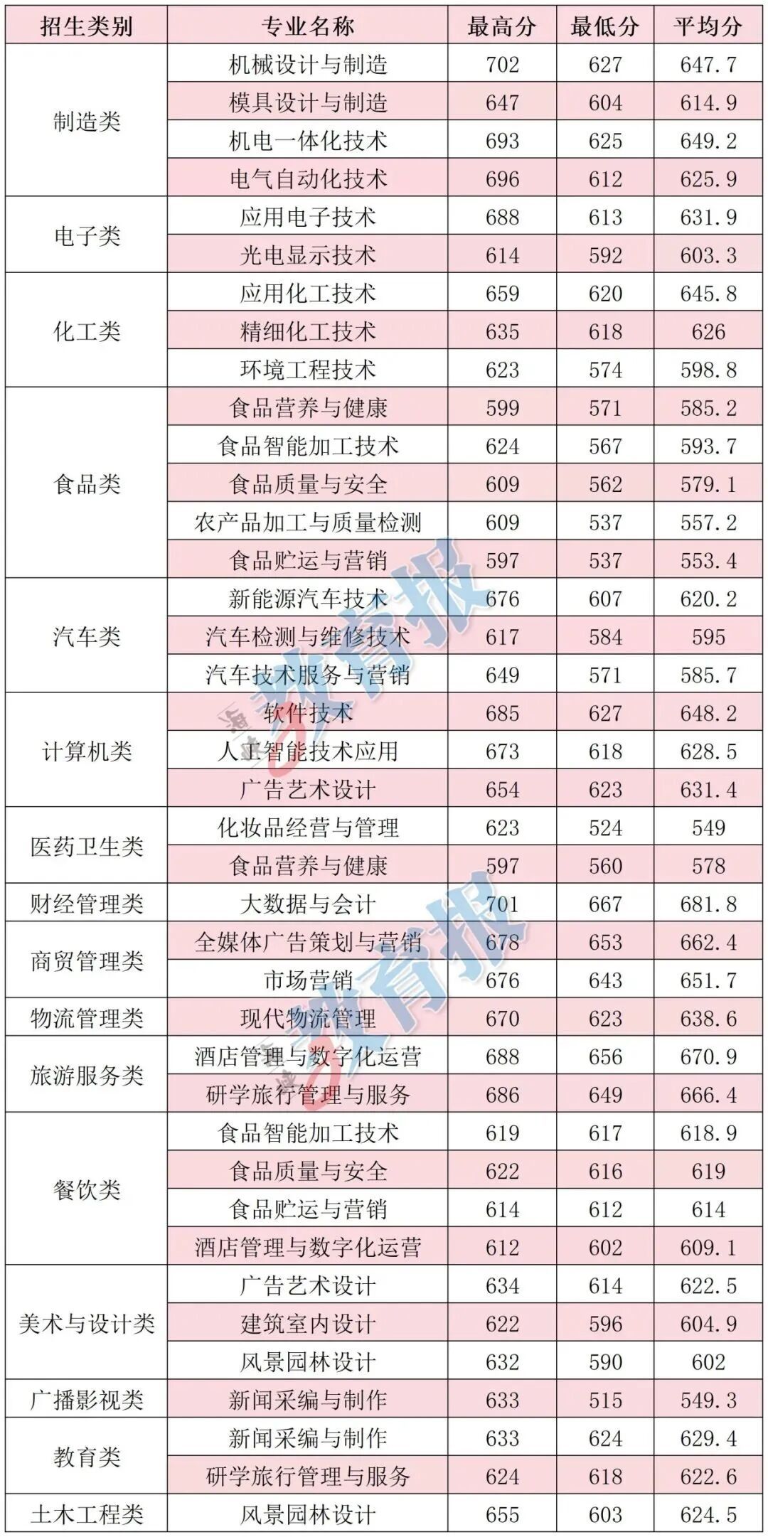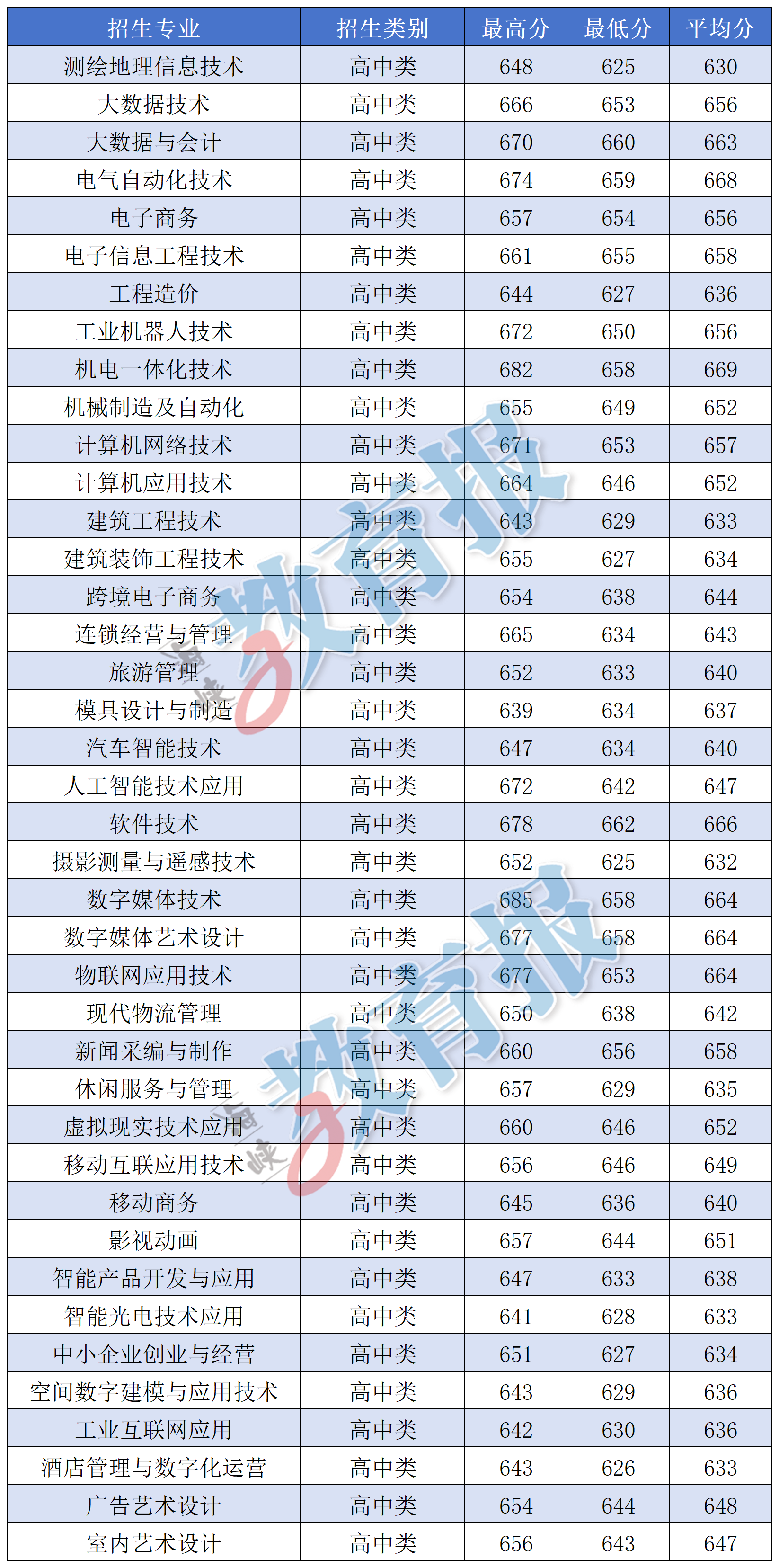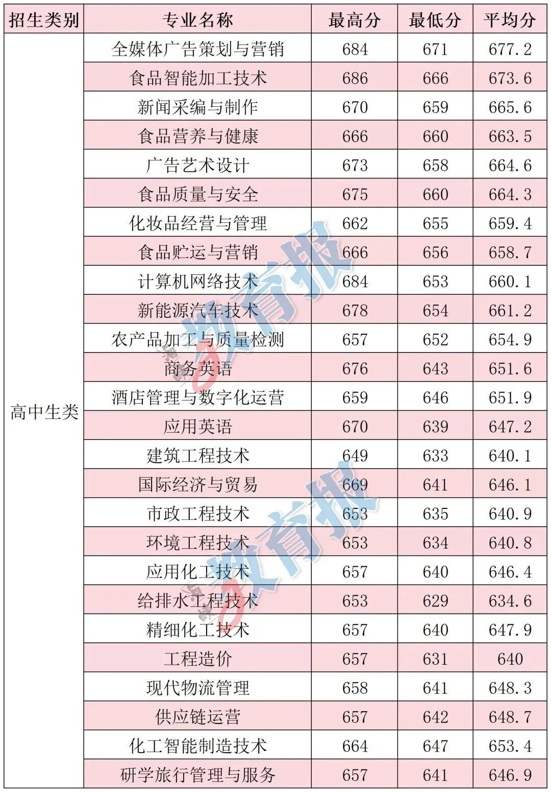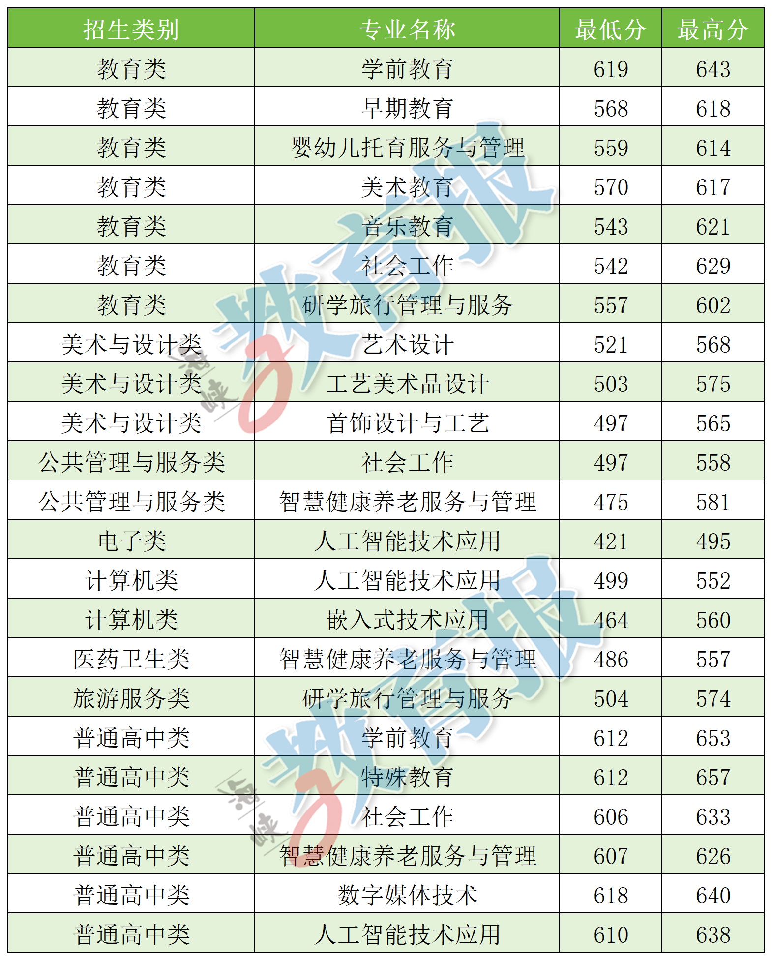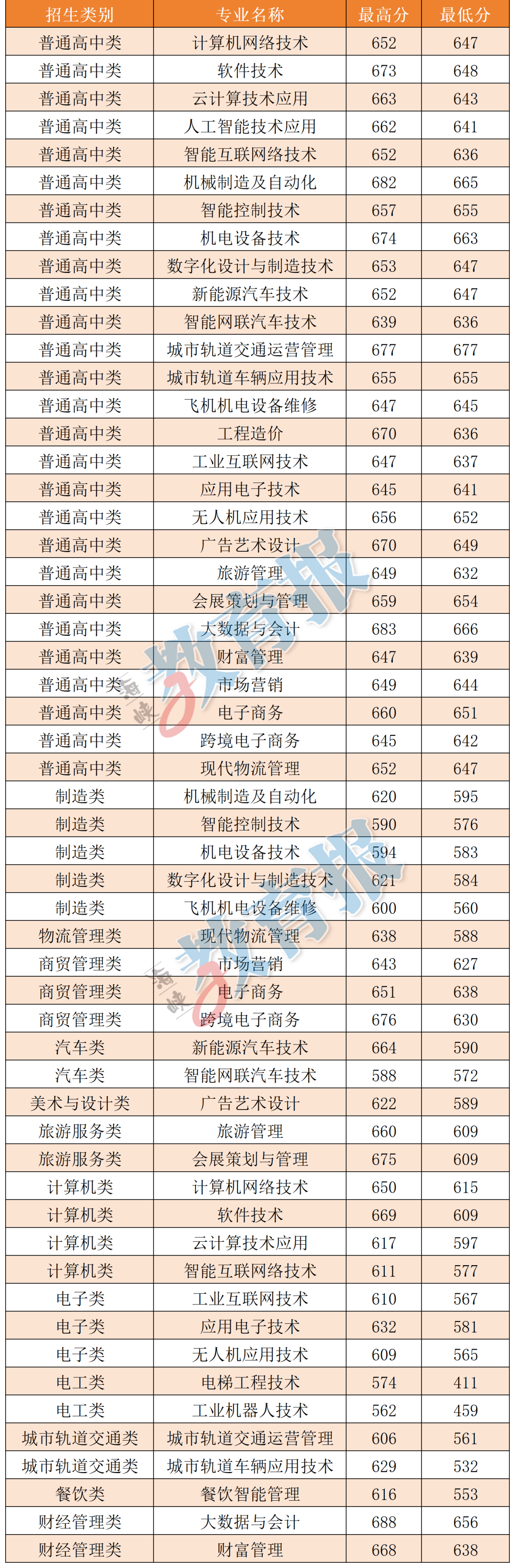 注:计算机应用技术专业录取最低分372分为福建省职业技能竞赛获奖考生成绩,实际录取最低分为524分。 【漳州职业技术学院】