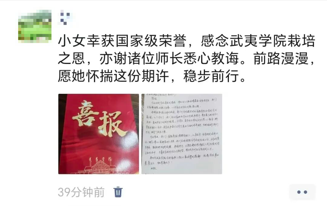 近期,武夷学院将41份2024-2025学年国家奖学金获得者喜报,陆续送到获奖学子的家中,一份份喜报既是对学子们勤学笃行的嘉奖,更是家校共育人才的生动见证。 纸短情长 远寄喜报传荣誉