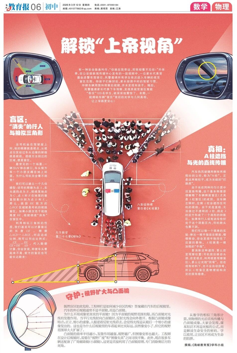 解锁“上帝视角” 103名学生 竟能“消失”在警车的 视觉盲区里? 揭秘盲区背后的 光学与几何真相 让上学路更安心