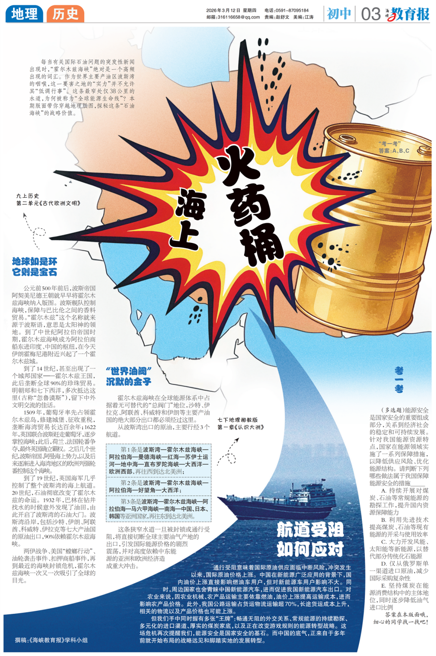 《海峡教育报》 将学科知识 与生活热点巧妙链接 让学习不枯燥 |