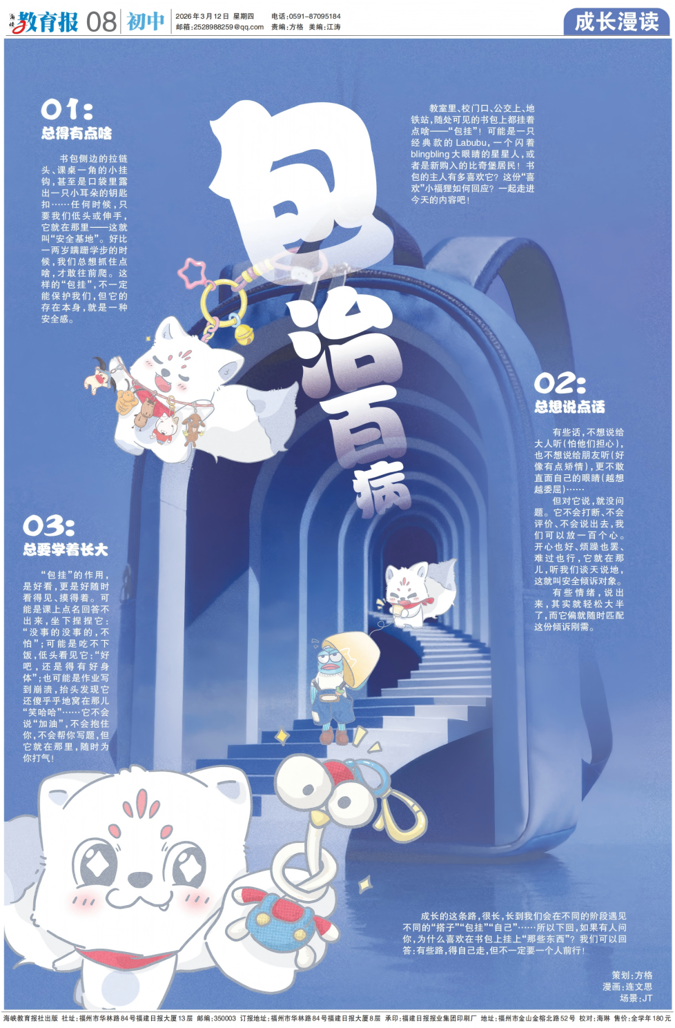 书包侧边的拉链头、课桌一角的小挂钩,甚至是口袋里露出一只小耳朵的钥匙扣…… 任何时候,只要我们低头或伸手,它就在那里——这就叫“安全基地”。 好比一两岁蹒跚学步的时候,我们总想抓住点啥,才敢往前爬。 这样的“包挂”,不一定能保护我们,但它的存在本身,就是一种安全感。 总想说点话
