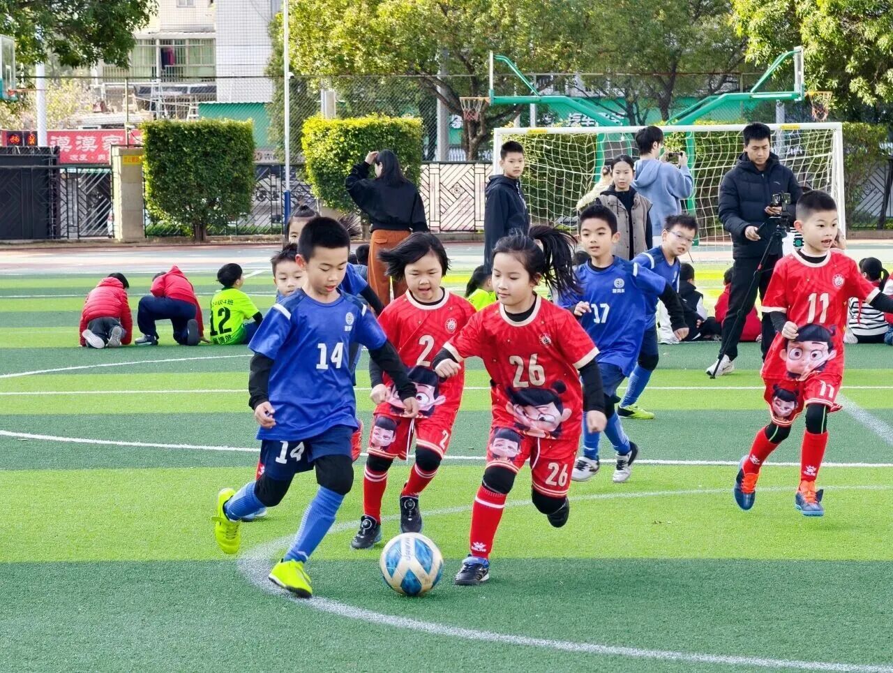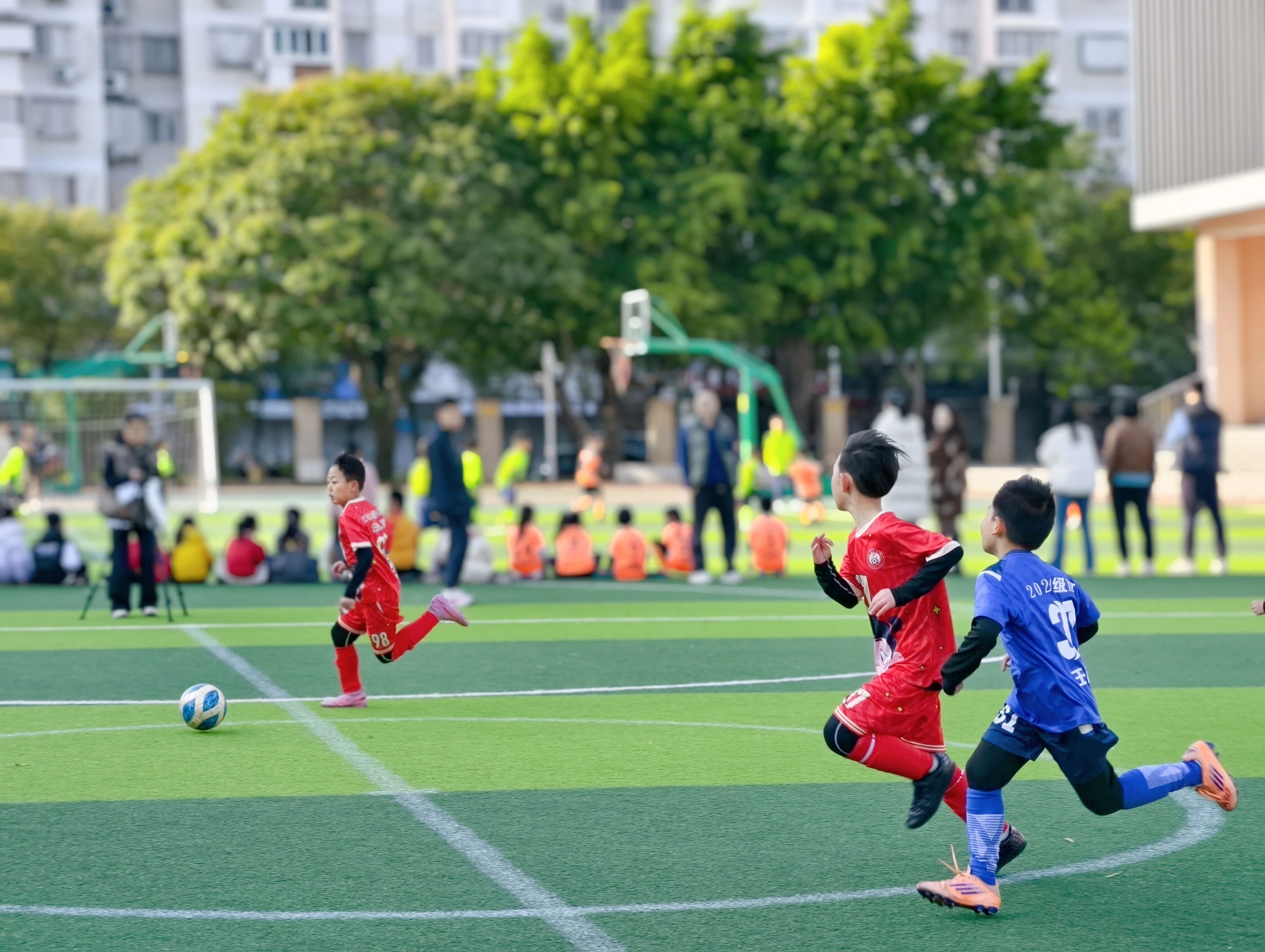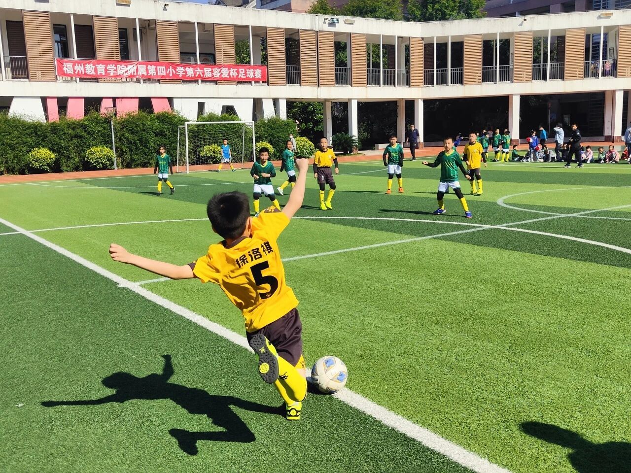 新学期,健康是“主角”,我省各校纷纷亮出绝活,只为践行“健康第一”的理念~ 在福州校园里,有这样的一场场足球比赛,不问天赋高低,不看技术强弱,每个孩子都能自信地站上赛场,踢出帅气一脚!这就是福州教育学院附属第四小学的“容爱杯”班级足球联赛(班超),至今已举办10届,累计组织比赛超1000场…… 开赛!进球!决胜负! “加油!冲啊!”“快传球!”“守住!”校园绿茵场上,少年们的呐喊声一浪高过一浪,球鞋摩擦草地、足球撞击门柱的清脆声响此起彼伏。3月初,福州教育学院附属第四小学第十届“容爱杯”班级足球联赛正式拉开帷幕。