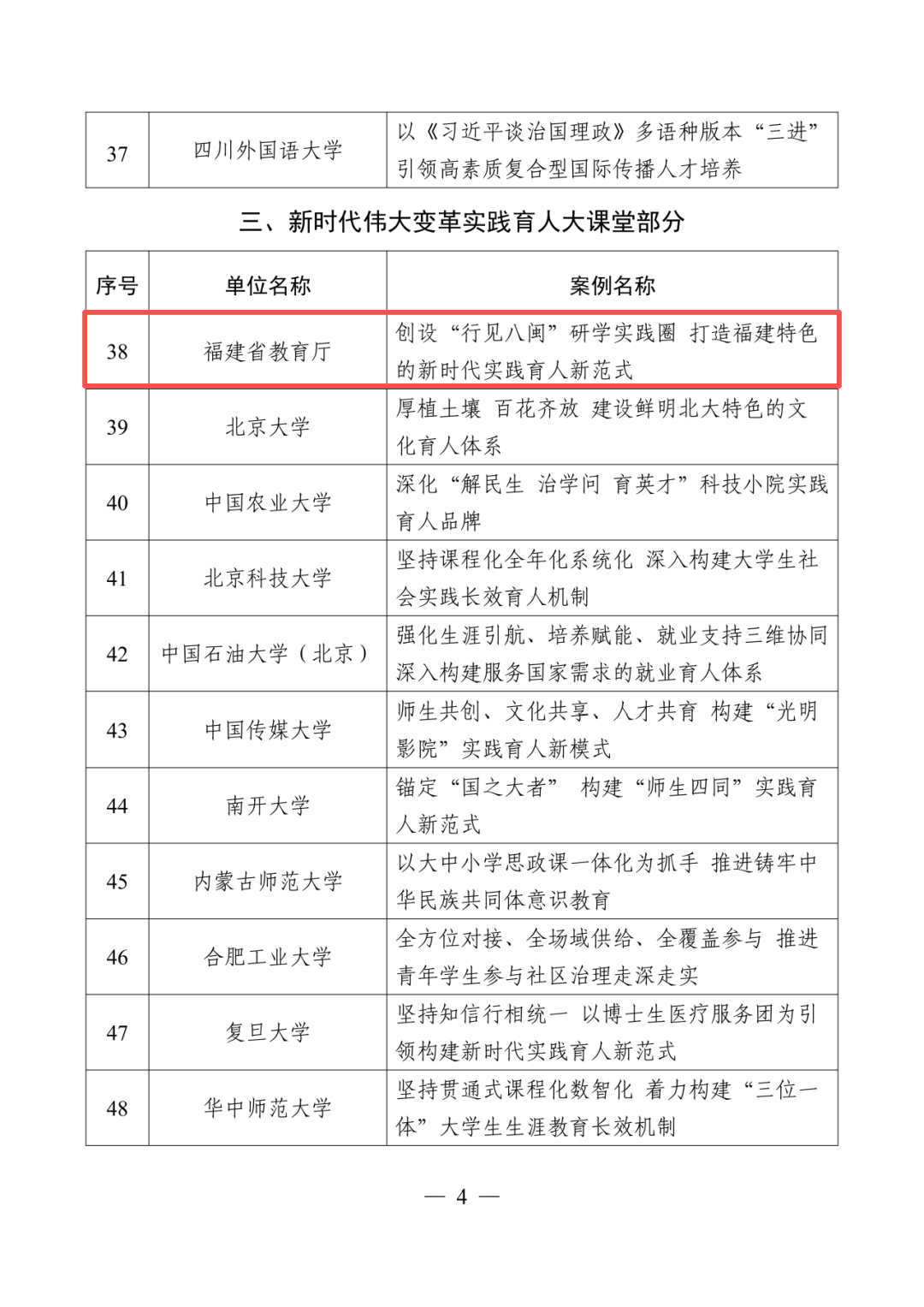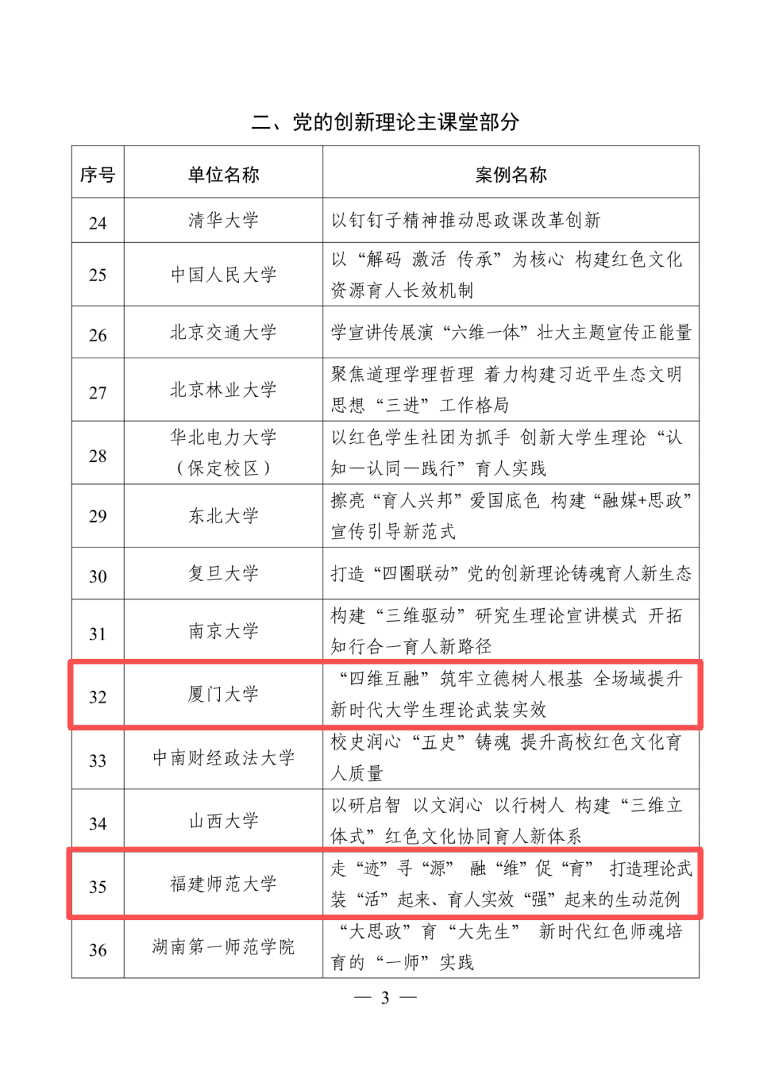福建省教育厅及两所高校入选教育部首批新时代学校思想政治教育典型案例