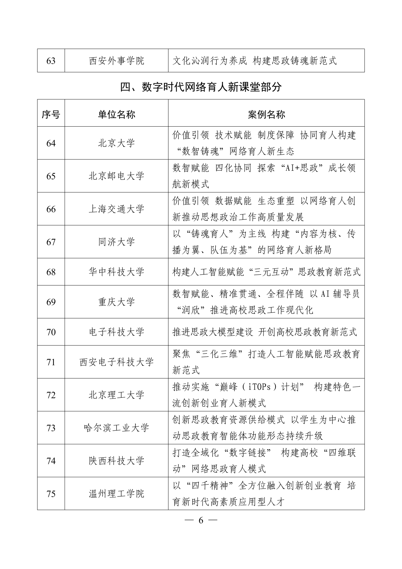 首批100个典型案例对标新时代立德树人工程布局,包括立德树人机制综合改革、党的创新理论主课堂、新时代伟大变革实践育人大课堂、数字时代网络育人新课堂、教师队伍和基层组织建设等5部分,系统涵盖思政工作相关体制机制、平台载体、队伍支撑、协同保障、评价反馈等各方面。 下一步,教育部将组织开展典型案例培训推广工作,指导各地各校结合立德树人机制综合改革持续深化对典型案例的总结提炼、完善提升和宣传推介,加强和改进学校思想政治工作,不断提升立德树人效能。 |