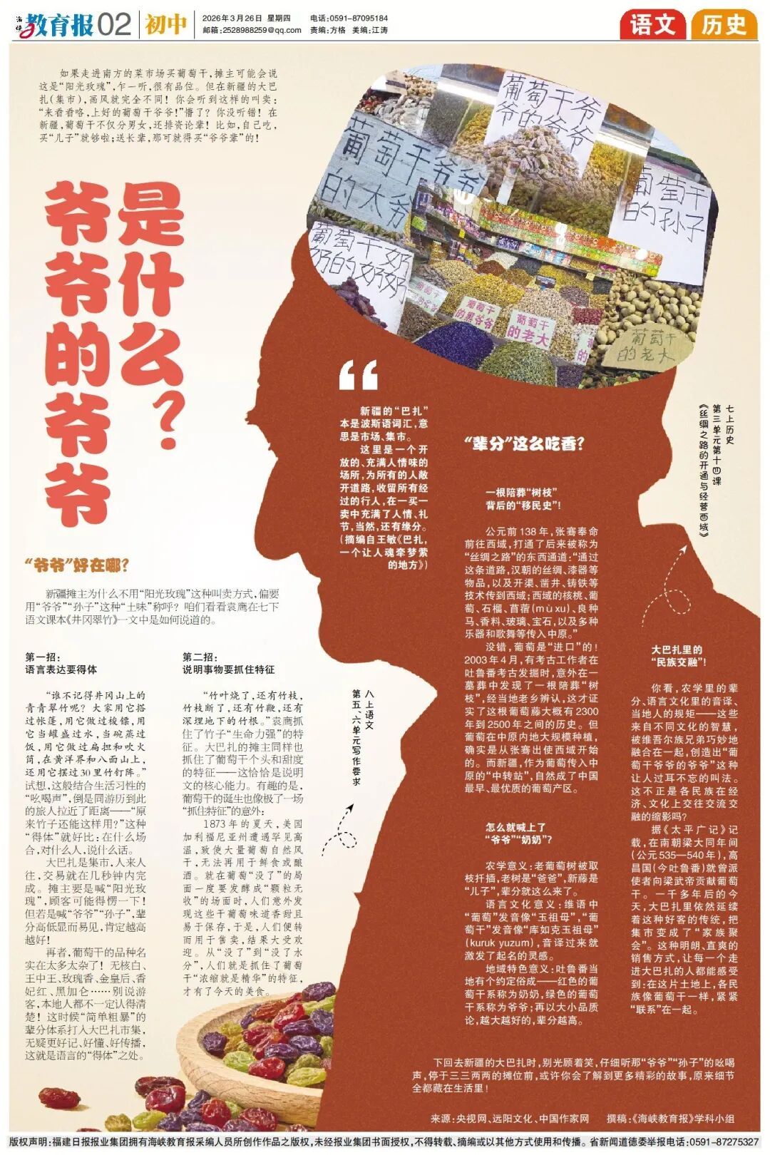 “985”是我们祖先玩剩下的 语文课研究葡萄干家族 大明星教你“活人”哲学 …… 《海峡教育报》 这期版面藏了什么大招? 别急,打开报纸 给你安排得明明白白!
