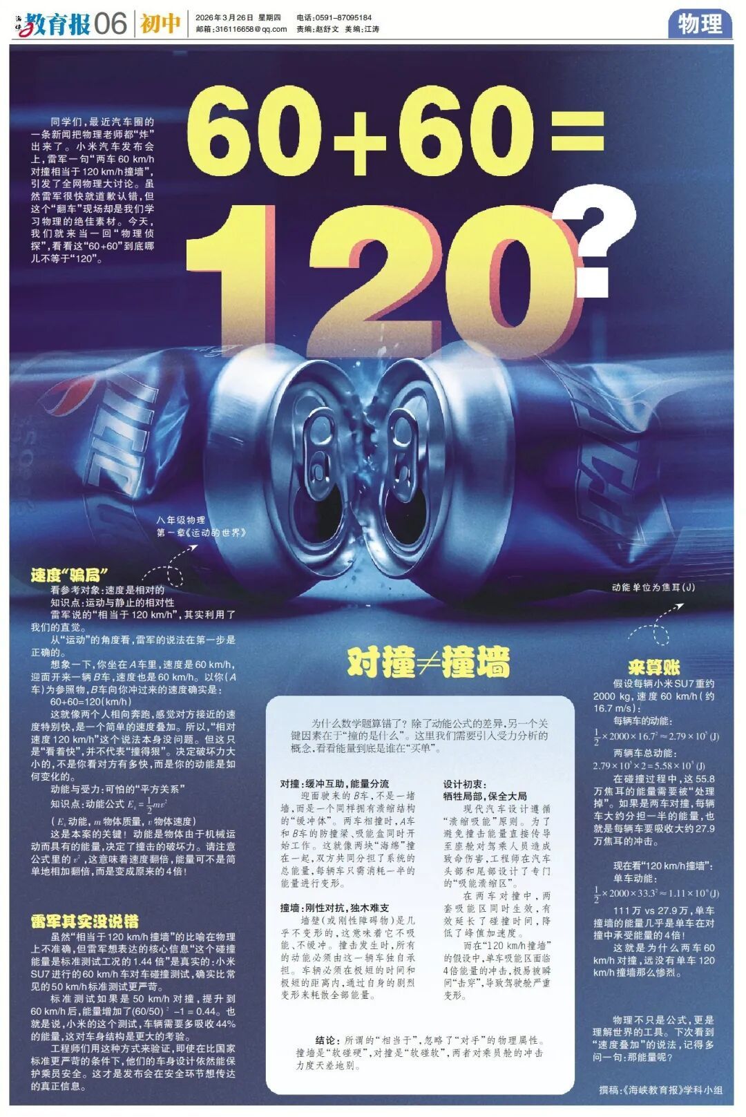 60+60=120? 数学老师:对! 物理老师:不对! 雷军说了什么 引起数学和物理打架? 原来是“能量”在作怪